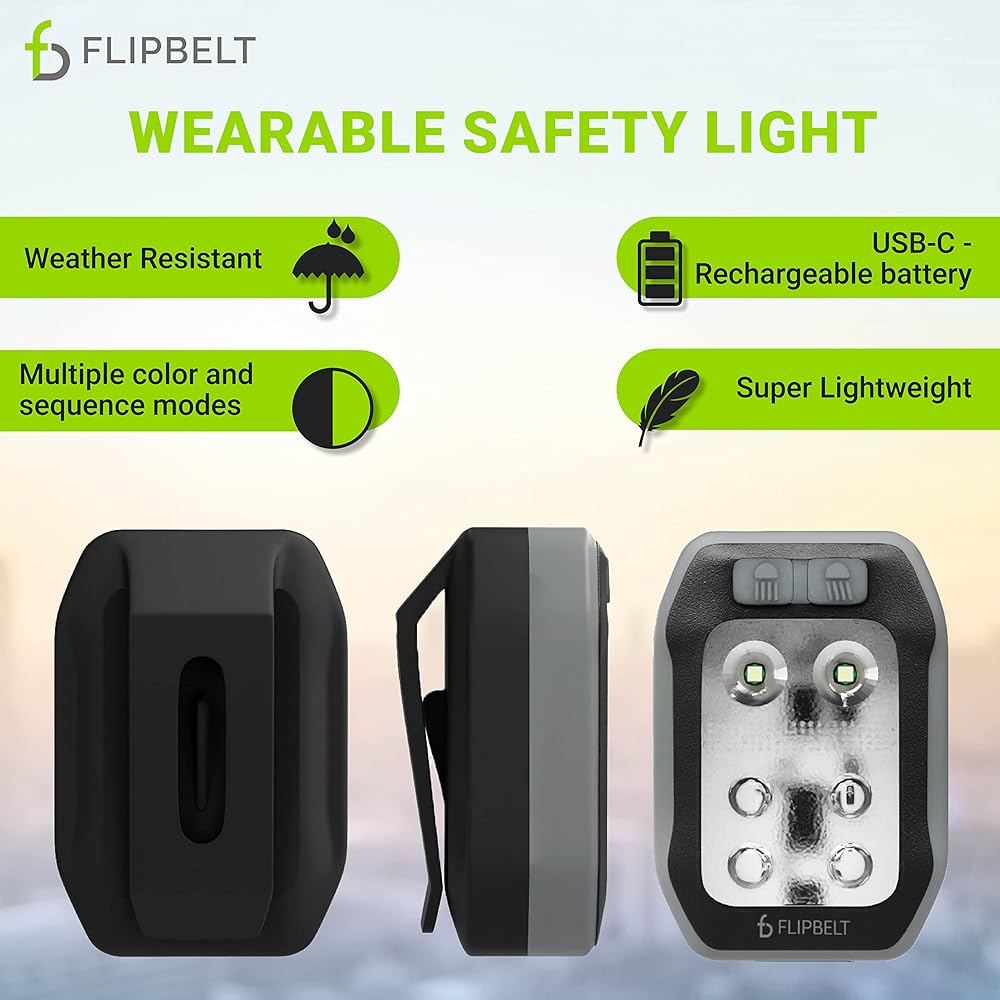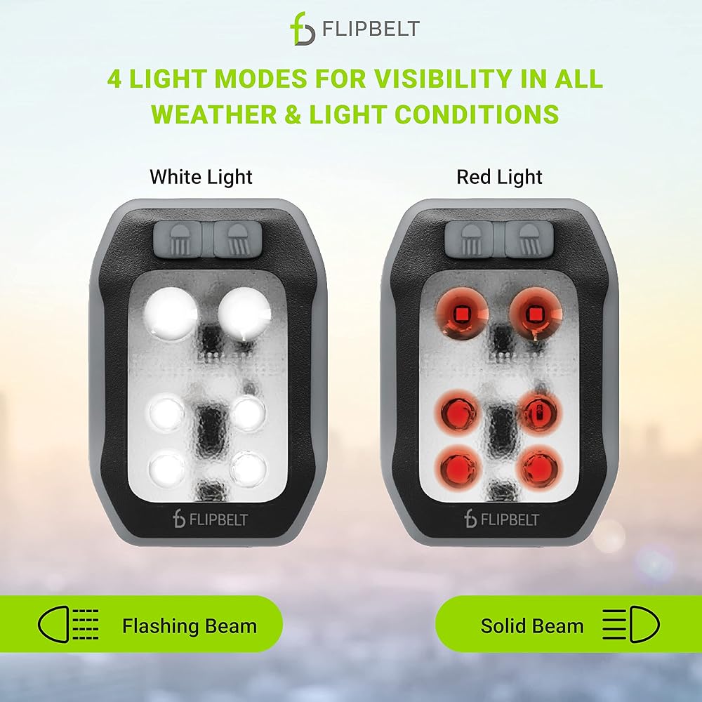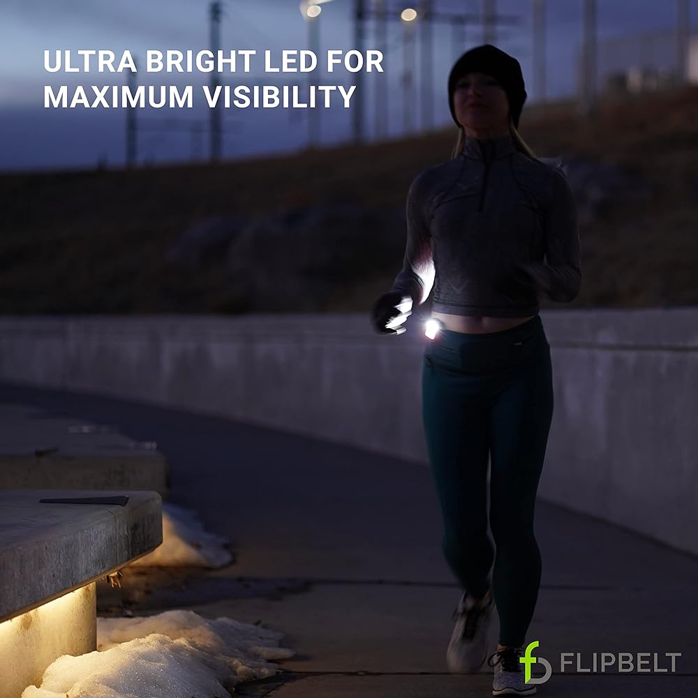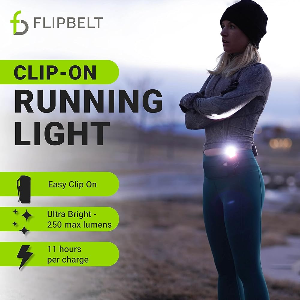 FlipBelt Clip On LED Running Light for Men and Women, Hands Free Safety Flashlight for Running, Biking, Hiking, Portable and Rechargeable Night Running Gear