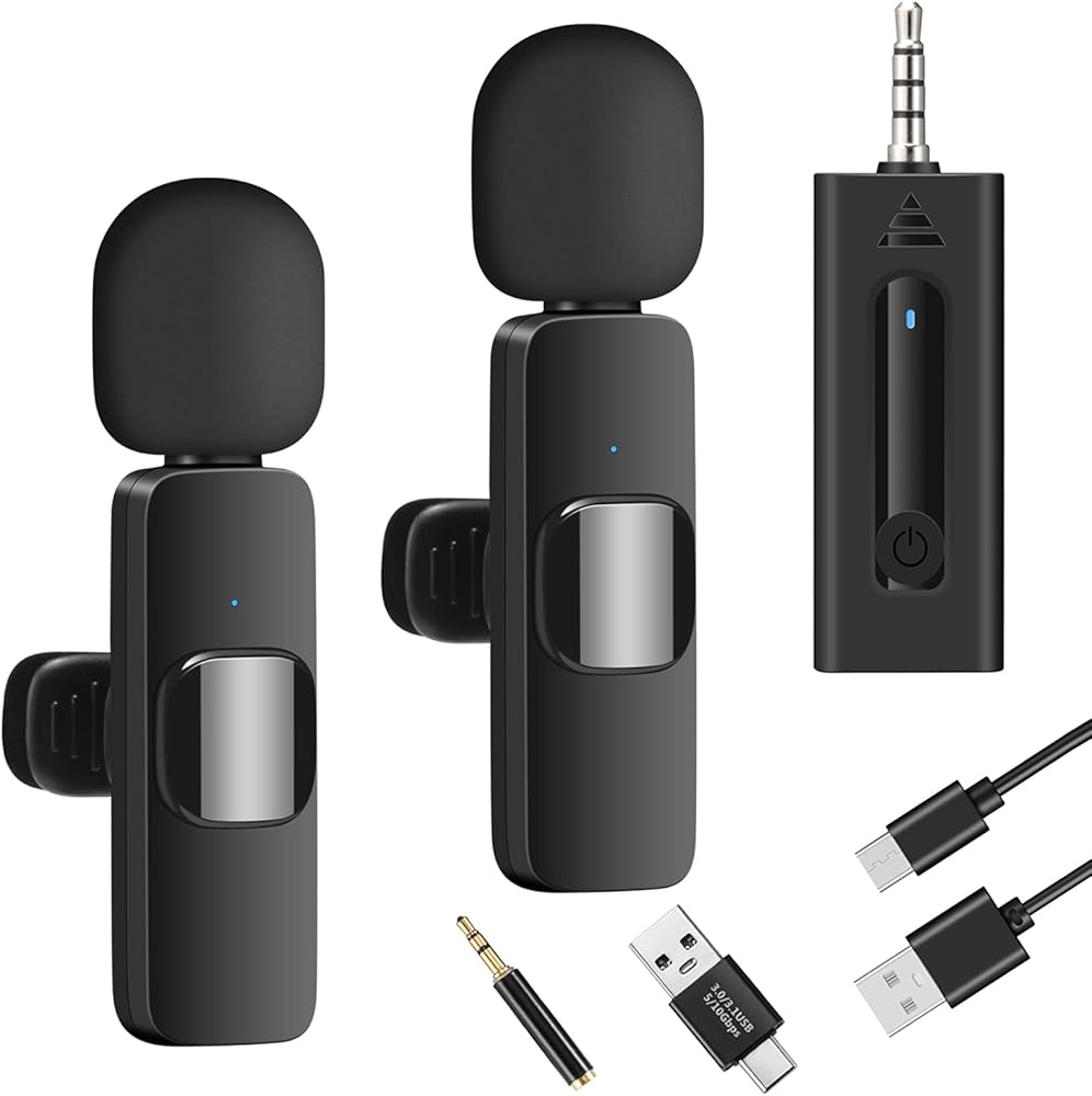 ميكروفونات لاسلكية مزدوجة: تتضمن مجموعة الميكروفون اللاسلكي هذا جهاز استقبال واحد و2 جهاز إرسال ميكروفون ومحولين، مما يجعل من الممكن تسجيل الصوت أو الفيديو من كلا الطرفين في نفس الوقت. كما يمكنك أيضًا استخدام مجموعة ميكروفون وجهاز استقبال. ملاحظة: يرجى قراءة دليل المستخدم وشحن ميكروفون لافالير اللاسلكي قبل استخدامه لأول مرة. عند استخدام قابس تي ار ار اس لتوصيل الأجهزة، تحتاج إلى إزالة جهاز الاستقبال لتتمكن من سماع تشغيل الصوت.