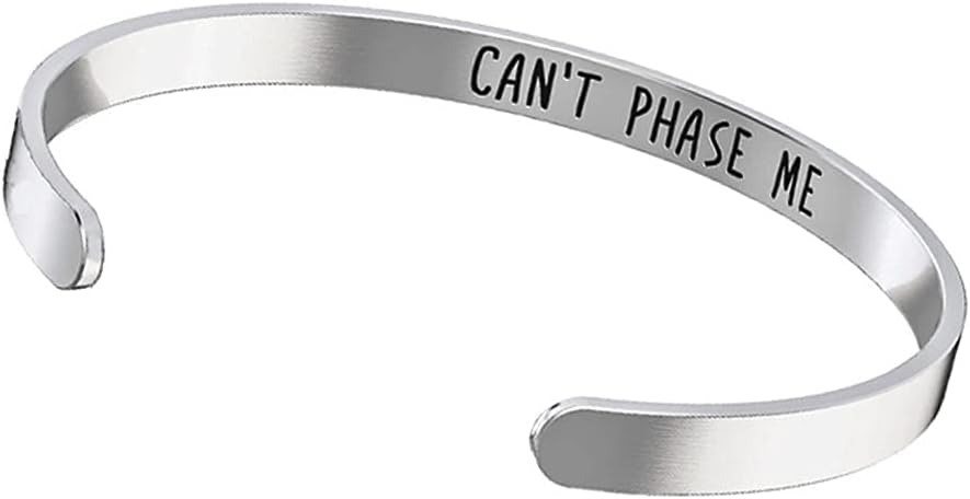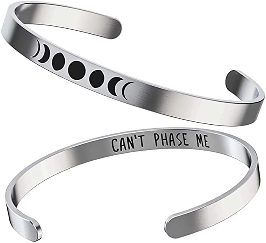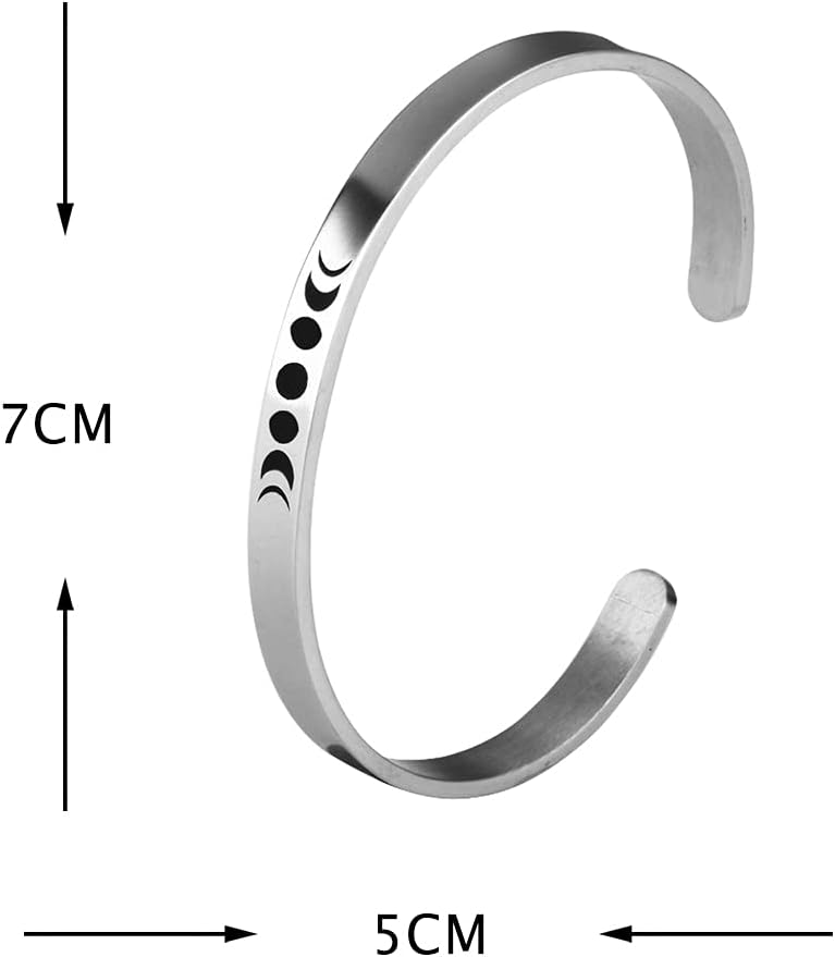 • 🌖🌗🌘🌑🌒🌓🌔 تصميم كلاسيكي - يبلغ حجم سوار الآلهة الثلاثي هذا عرض 5 مم، وقطر 70 × 55 مم. سوار المعصم المفتوح هذا هو سوار على شكل C، وهو قابل للتعديل. الجزء الداخلي مختوم باقتباس ملهم "Can't Phase Me".
