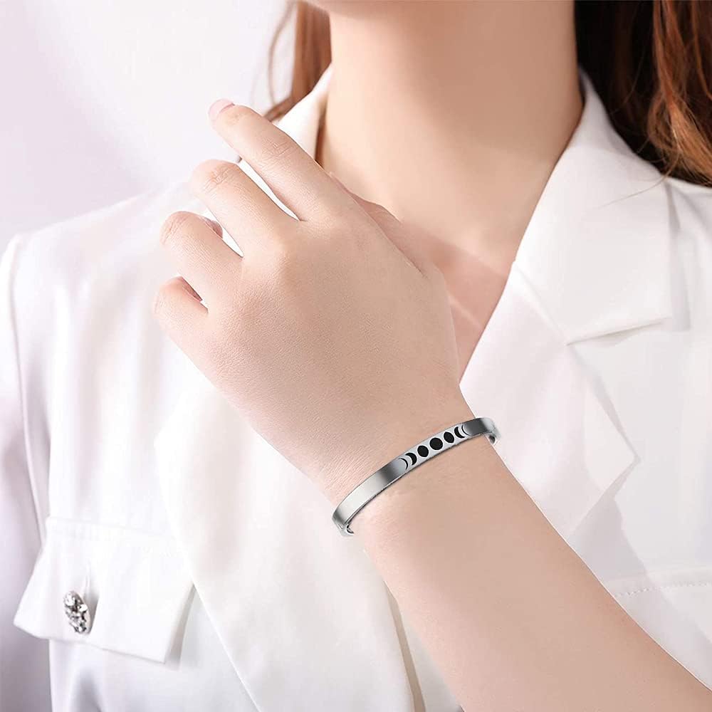 سوار TURTLEDOVE Moon Phase Cuff - سوار من الفولاذ المقاوم للصدأ مع اقتباس ملهم "Can't Phase Me"