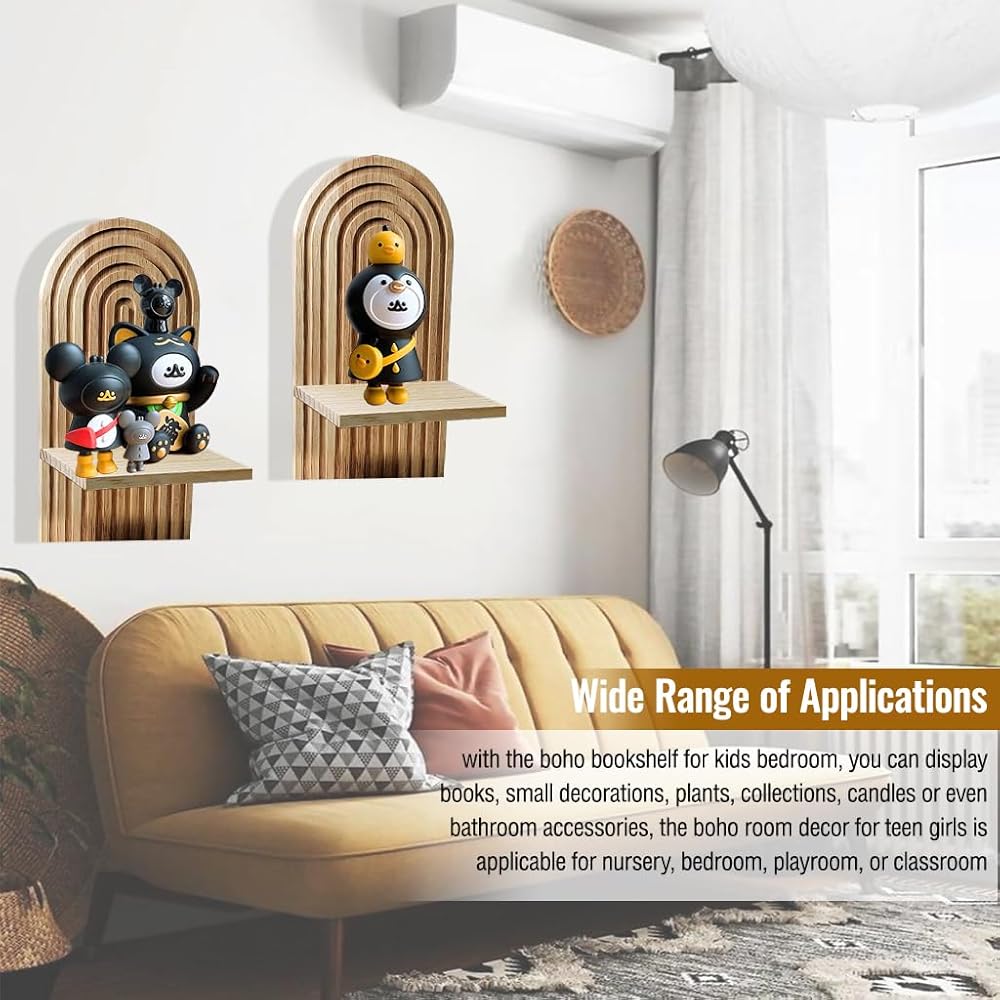 Usage Scenario: These two wooden rainbow boho wall shelves are suitable for use in many places, such as living room, bedroom, bathroom, hallway, nursery, etc. They can decorate each of your places well.