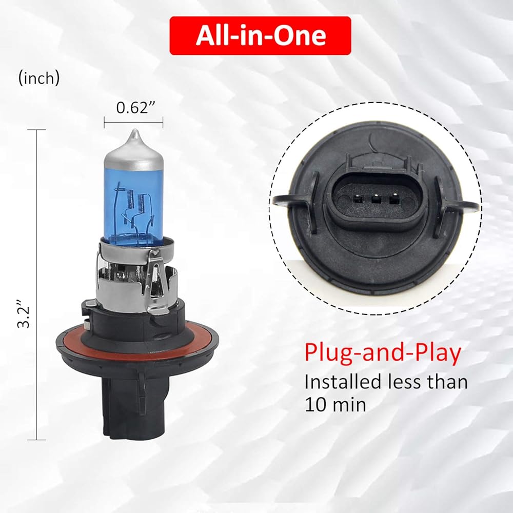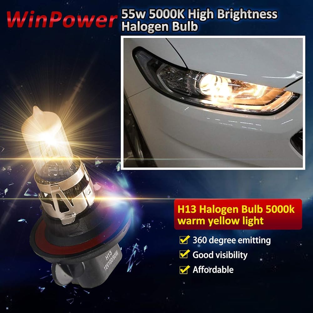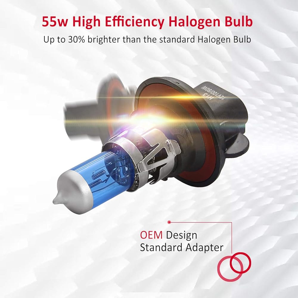 【انبعاث 360 درجة】مصابيح الهالوجين H13 متعددة الاتجاهات، والتي تنبعث الضوء بنمط 360 درجة كامل (وهذا يعني أنها تنبعث الضوء من مقدمة وجوانب المصباح. ) توفر إضاءة كافية للطريق الأمامي وجوانب الطريق. في نفس الوقت.