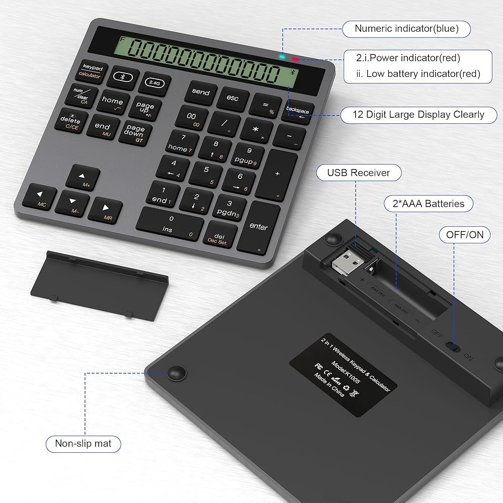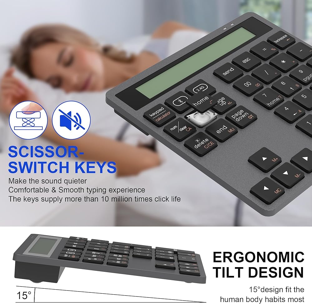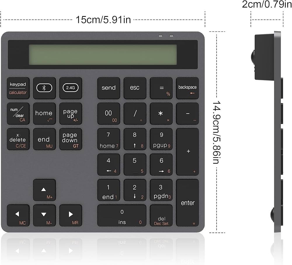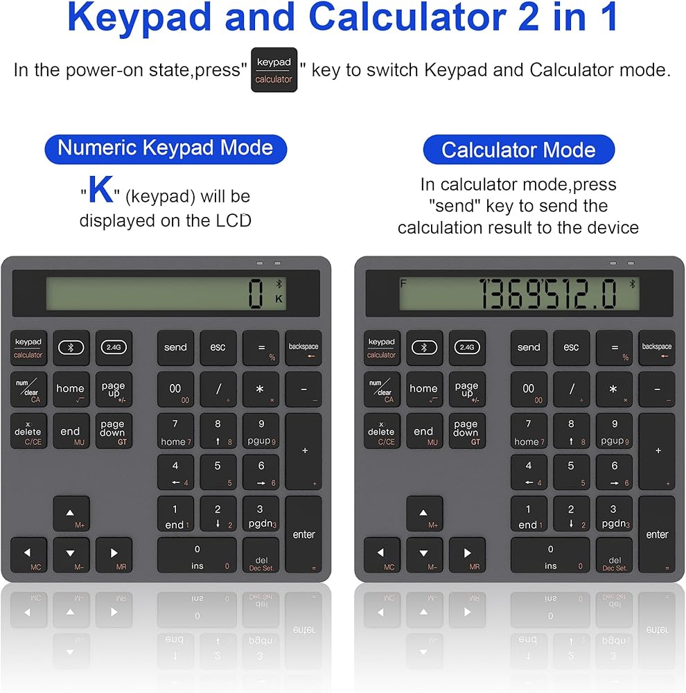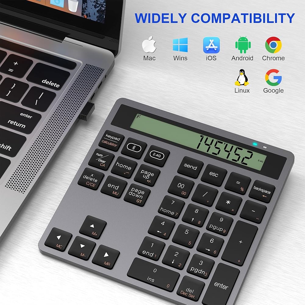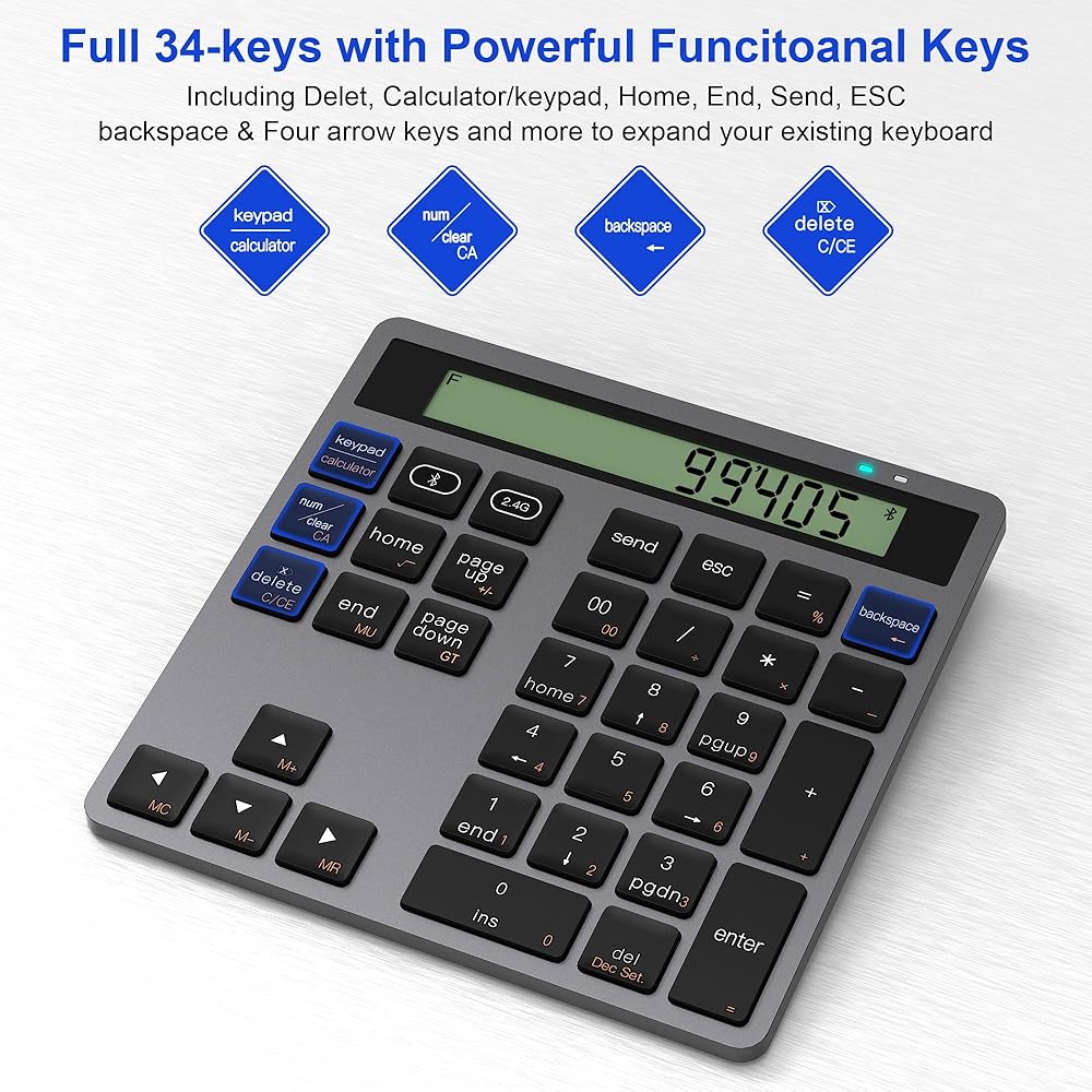 Ultra Slim Wireless Bluetooth 34-key Numeric Keypad with Multiple Shortcuts for Windows/Android/iOS/OS system Device!