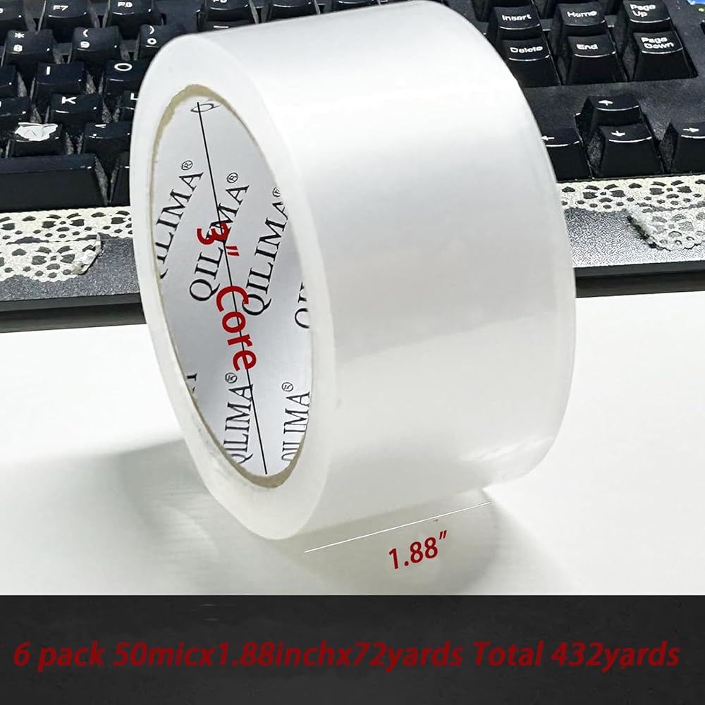 6 لفات من الشريط: شريط تغليف شفاف مقاس 1.88 بوصة. إجمالي 6 لفات، 432 ياردة يمكن استخدامها لفترة طويلة.