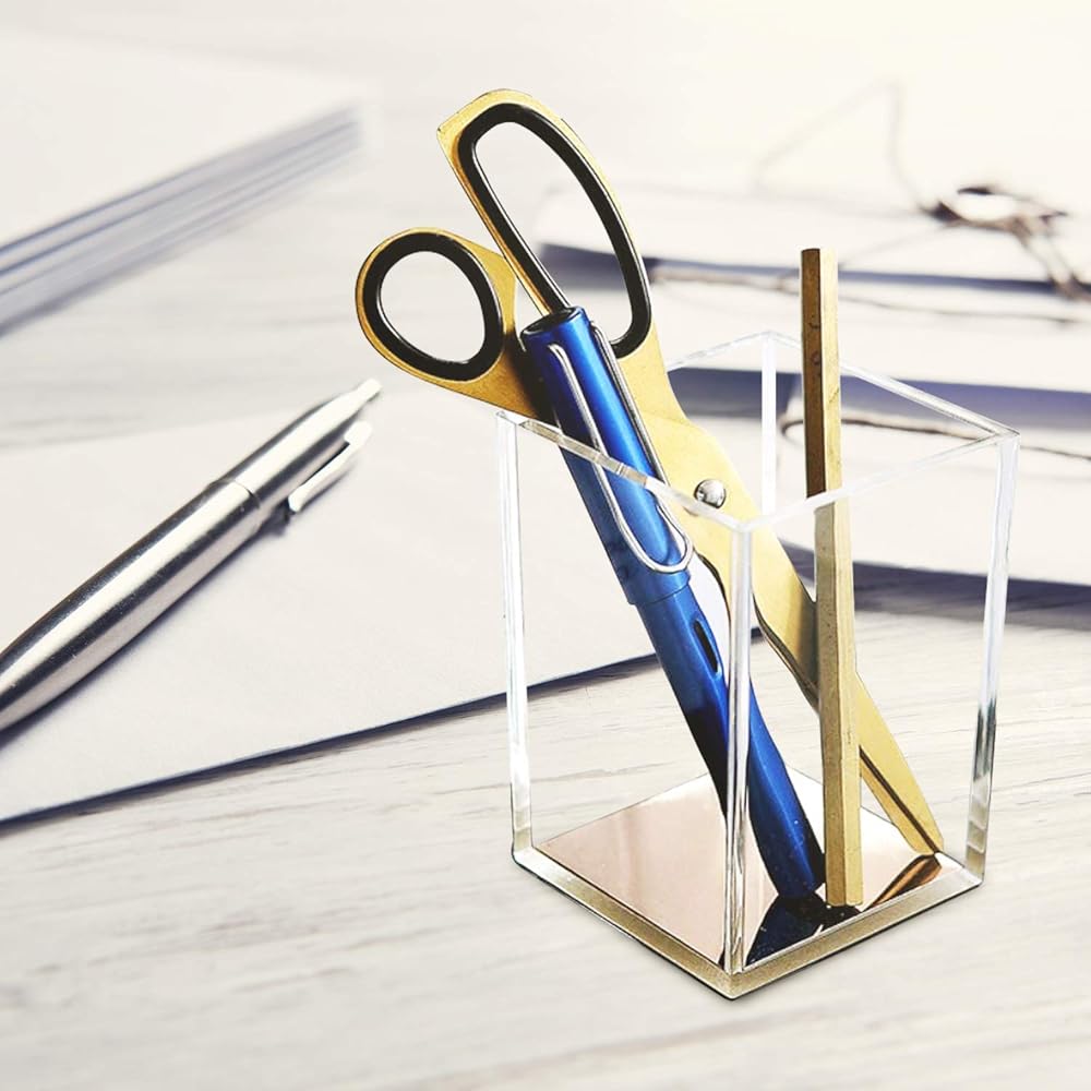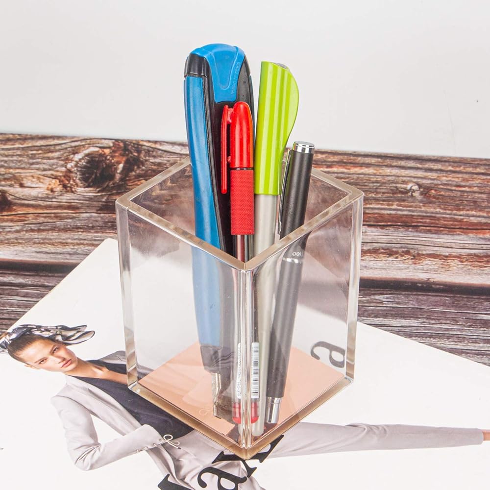 Non-slip Base -- The anti-sliding base made from cork will keep your pencil holder stable on the desk. You can easily move your acrylic pen cup without scratching the desk.