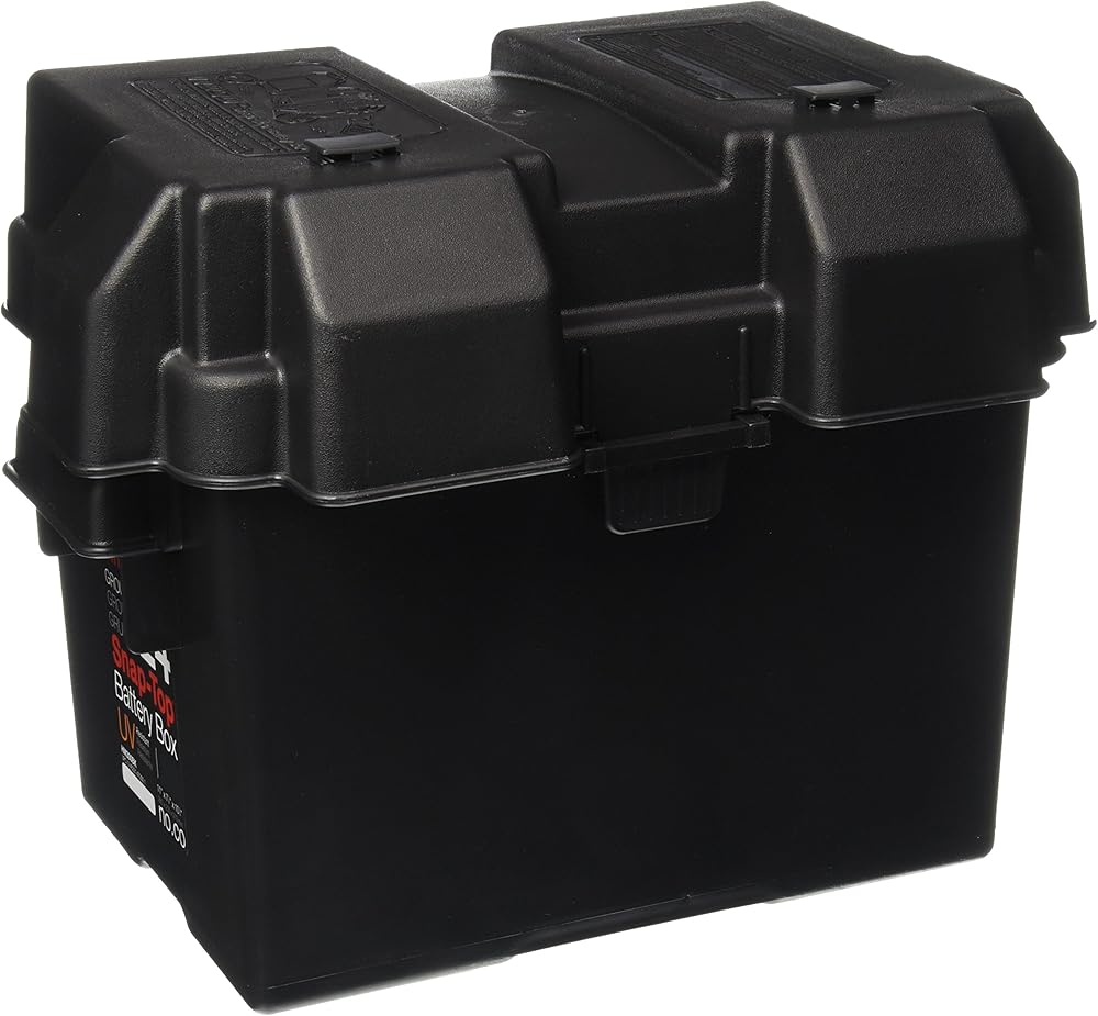 Large-Group 24 to 30 Batteries Battery Boxes come complete with tie-down strap, screws, and securing brackets. Will not corrode or shatter, molded of rigid polyethylene to protect battery from sun and salt water. Available in black. Dimensions: 11.00"L x 7.87"W x 9.75"H