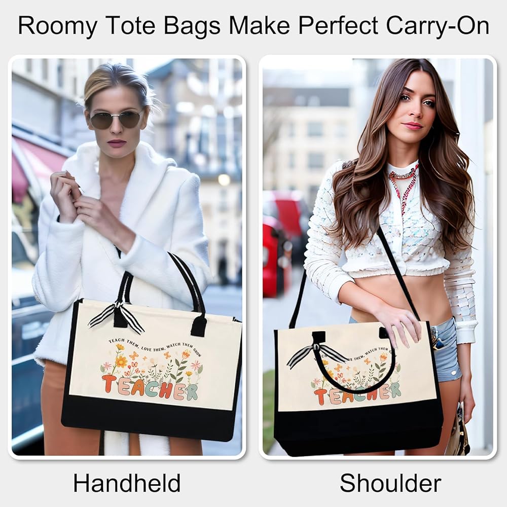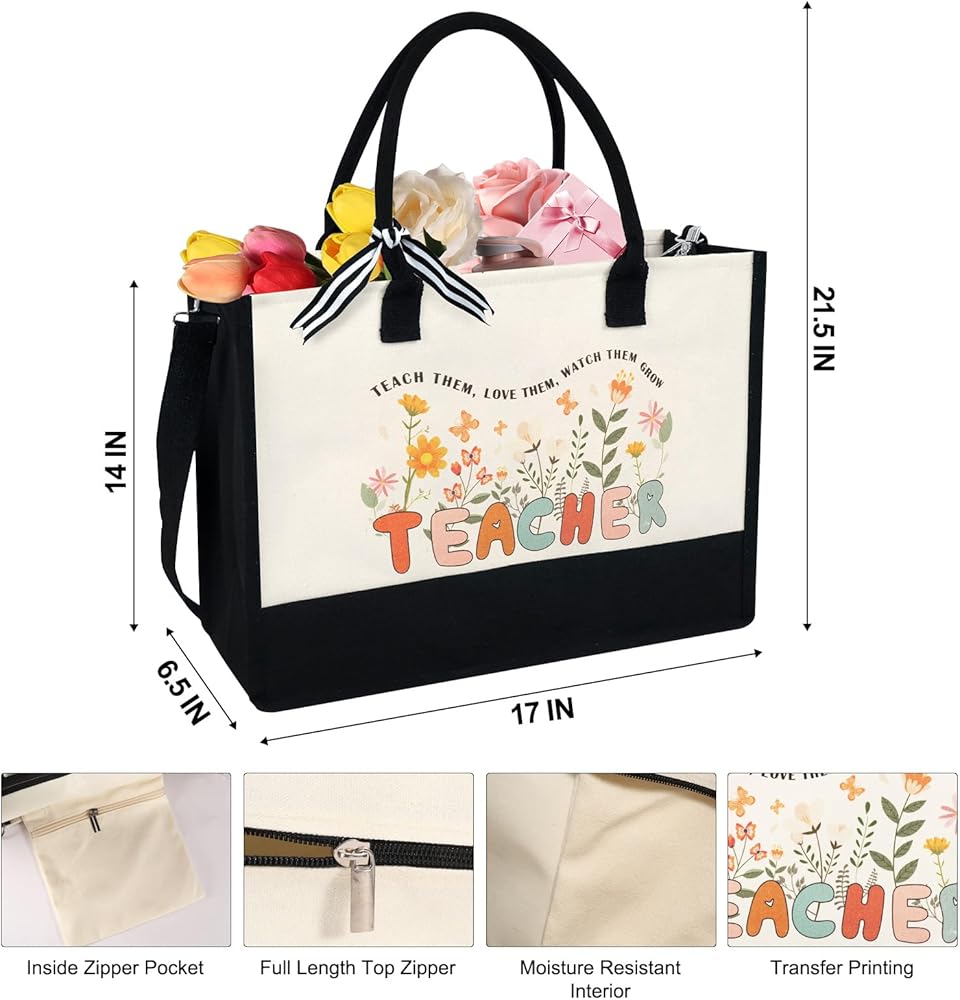 【Premium Material】Our Teacher Bags for Women are made of high-quality heavy canvas. The sturdy canvas material and thick lining ensure durability and water resistance, making it suitable for daily use. The combination of black and white colors adds a touch of luxury to the design, while the improved zipper closure provides added security for your belongings. Treat your favorite teacher to this versatile and practical gift today.