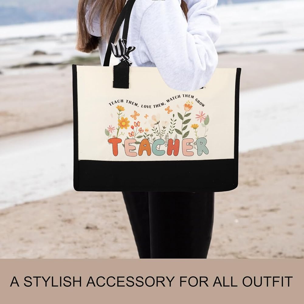 【Widely Used Tote Bag】Make your favorite teacher's day with our Teacher Tote Bag. This versatile bag is perfect for carrying books, groceries, or even a laptop, thanks to its large capacity and sturdy construction. With a chic design and practical features like a zipper closure and inner pocket, this bag is a stylish and functional gift for any teacher.