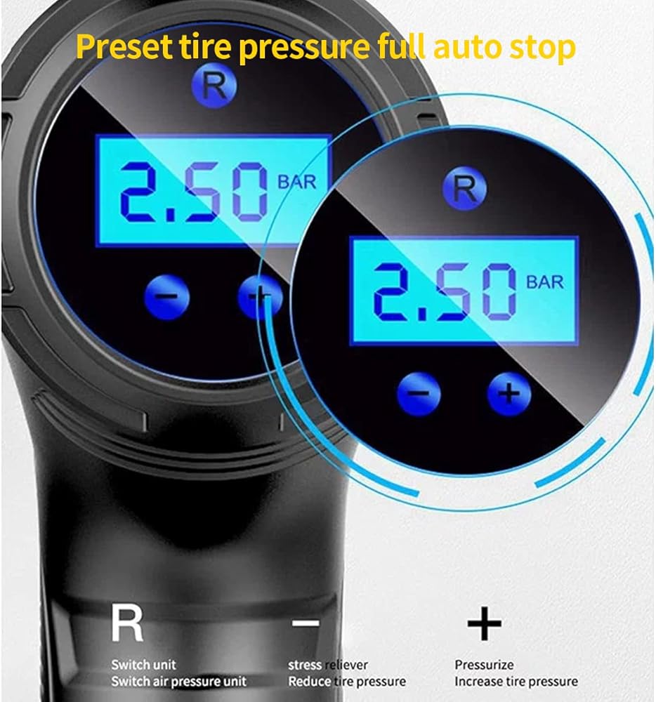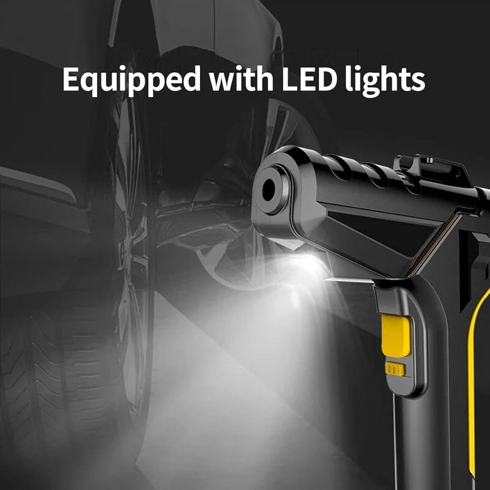 • * The product comes with LED light, which is convenient to inflate the LED light at night. Preset the desired pressure level and start inflating job. The car air compressor will shut off automatically at the desired level. There is no need to worry about over inflating.