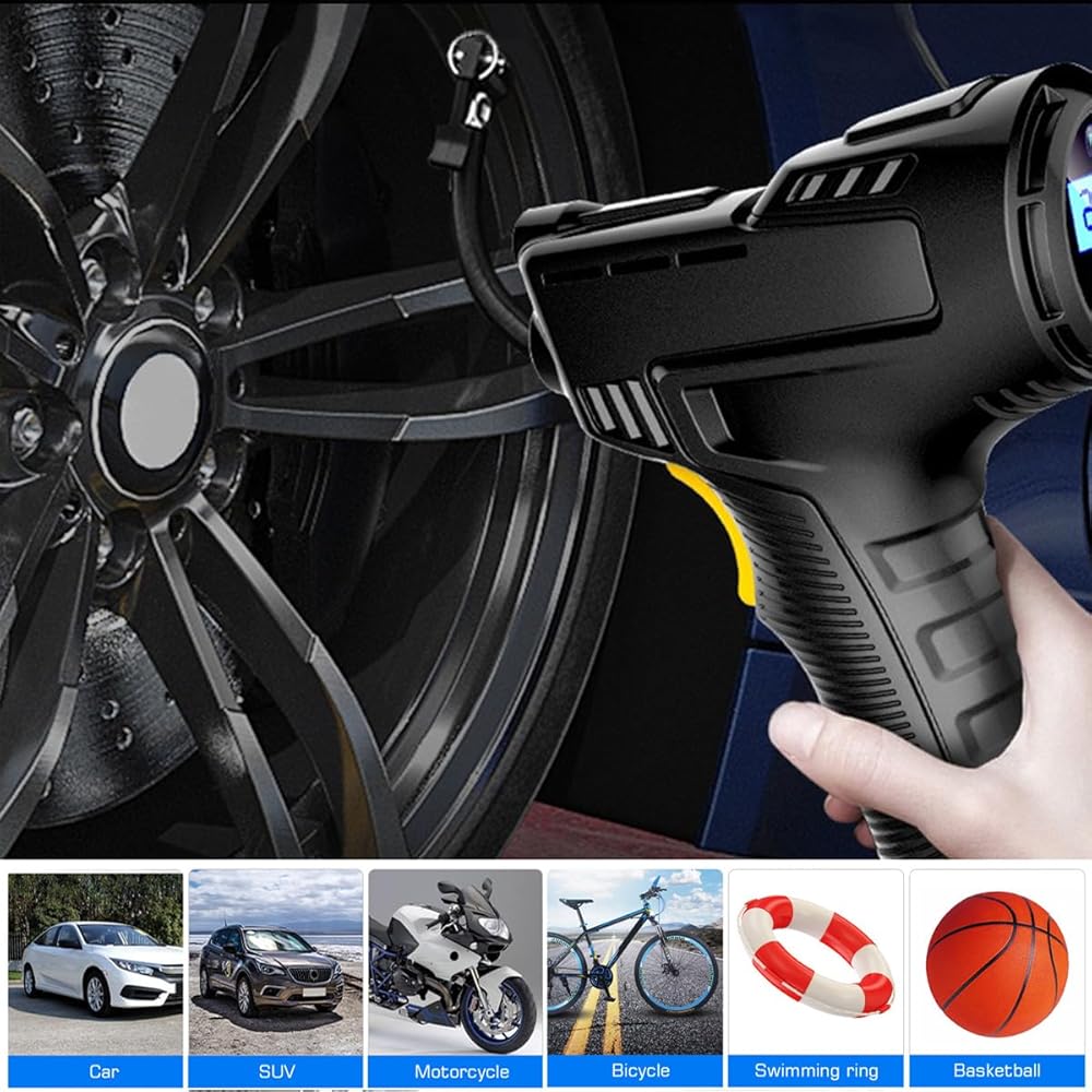 • * Perfect for car, truck, suv, motorcycle tires. Includes three nozzle attachments for sports balls, air mattress, pool toys and other inflatables. Can also be used as an air pump for bike.
