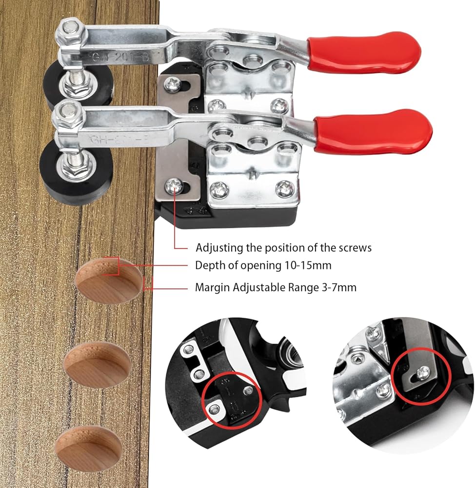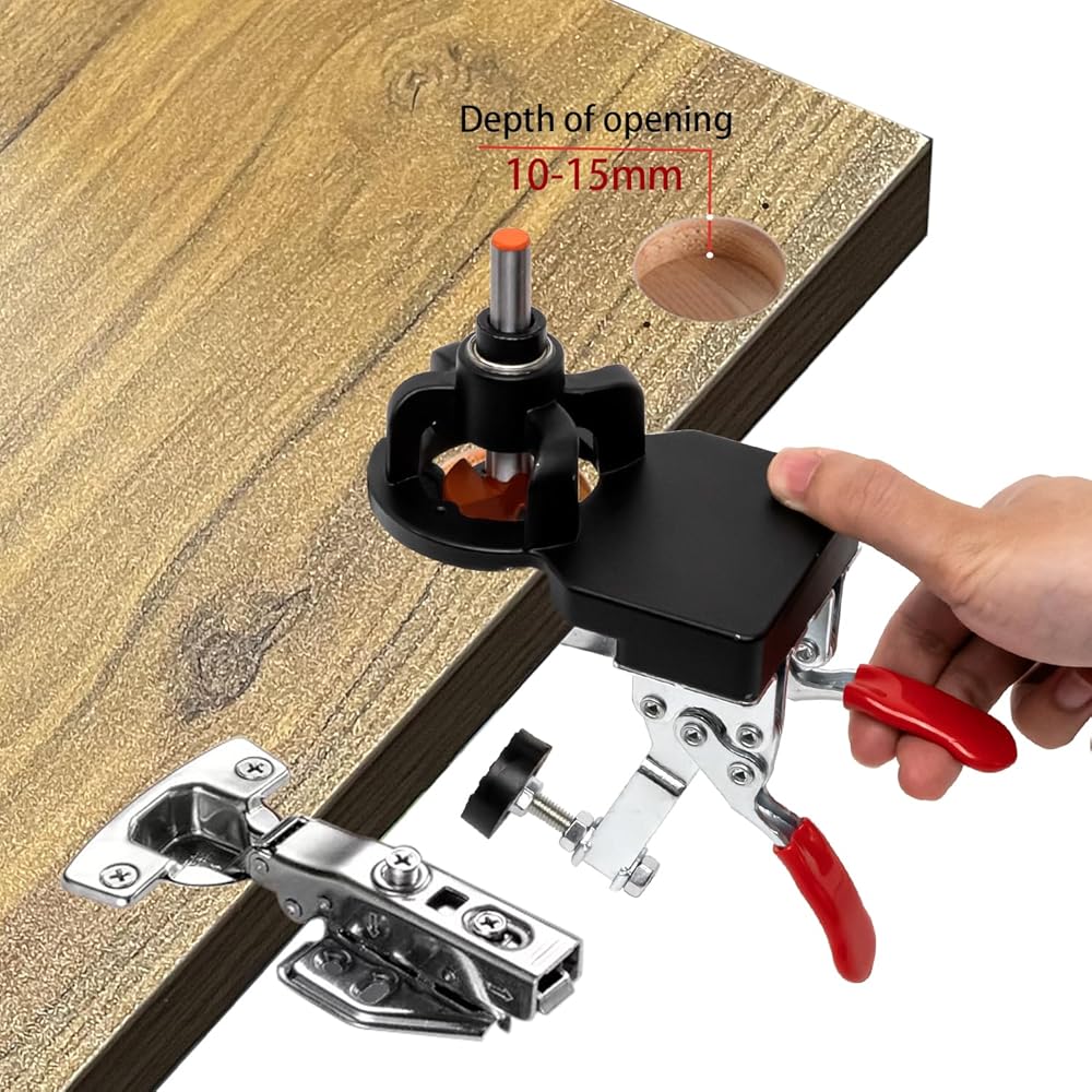 Adjustable Drilling Jig: This hinge jig is designed for the most common hinges, with a 35mm hole distance from the edge and easy depth adjustment for hinge cups.