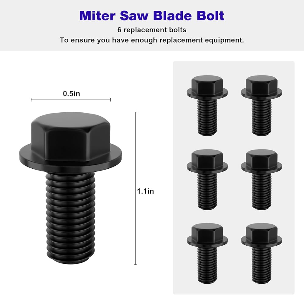 【مسمار الشفرة】أبعاد مسمار شفرة المنشار الميتري: 2.5 سم طول، رأس سداسي 1/2 بوصة. يعتمد مسمار شفرة المنشار الميتري الخاص بنا على تصميم خيط عكسي لليد اليسرى، والرأس السداسي ليس من السهل انزلاقه أثناء الدوران. يعمل جزء الحافة كغسالة مسطحة، والتي يمكن قفلها بقوة أكبر.