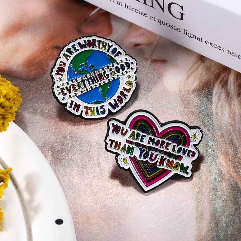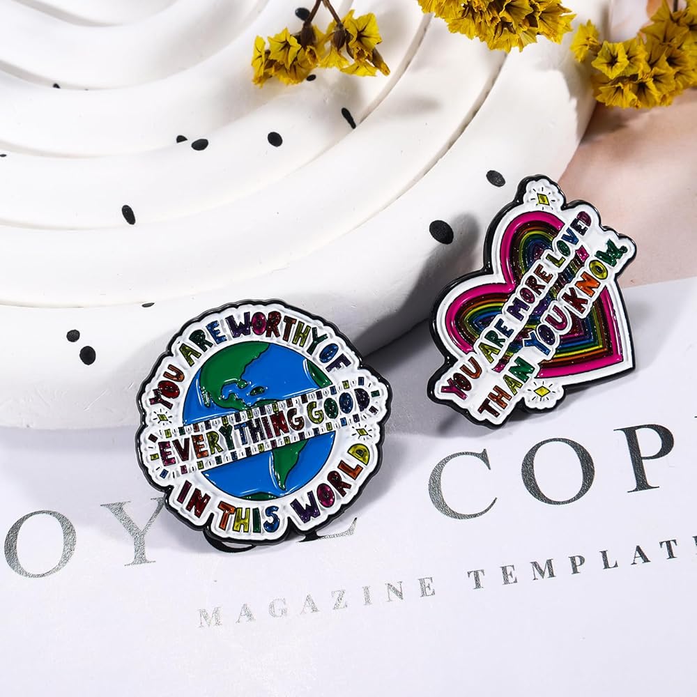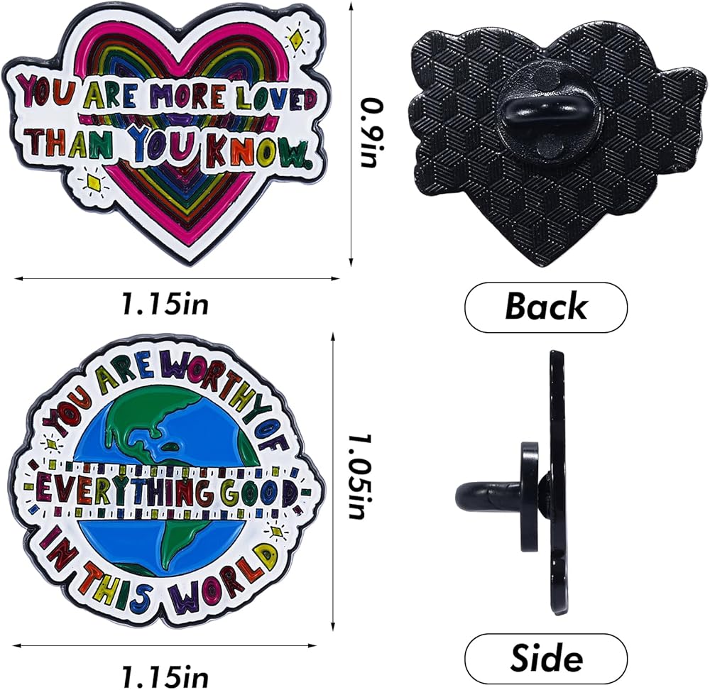 The Encouragement Enamel Pins Size:The heart pins is 0.98"x1.2",The circular pins is 1.1"x1.2"