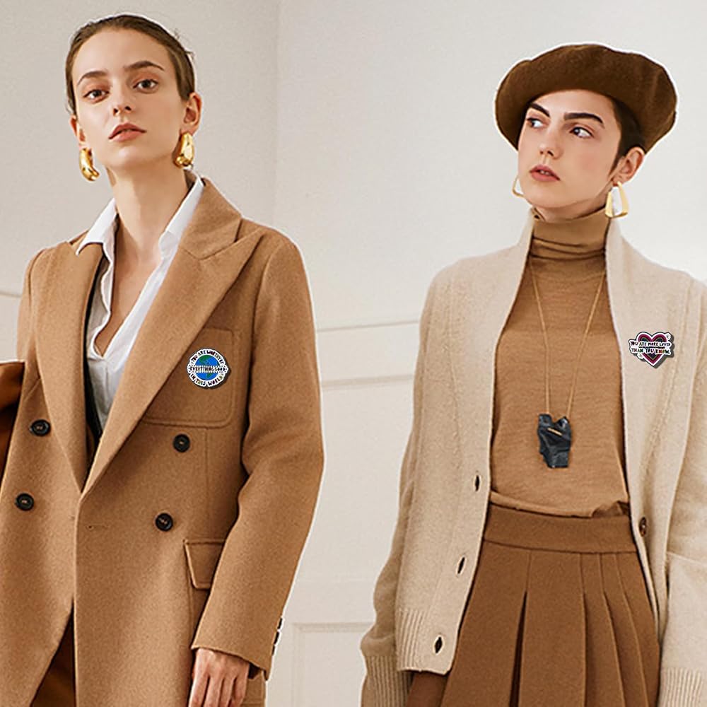 【CUTE DESIGN】:This love brooch and circular brooch both have words of encouragement.The heart pins length is 2.5cm(0.98in),The heart pins width is 3cm(1.2in),The circular pins length is 2.8cm(1.1in),The circular pins width is 3cm(1.2in).