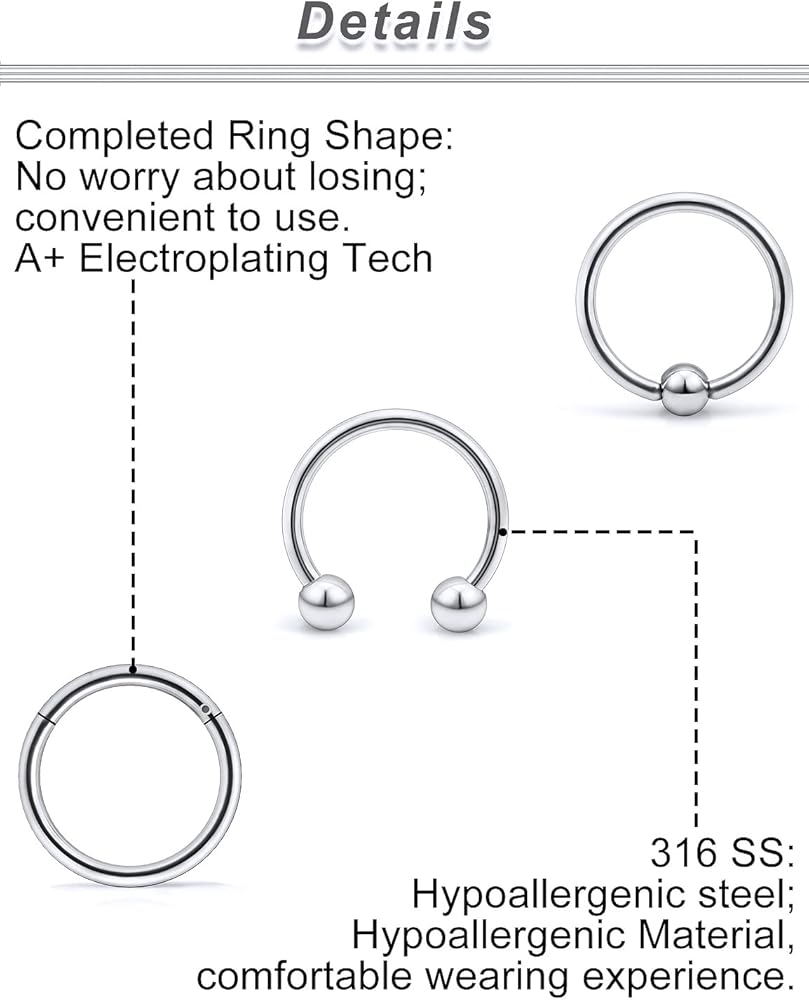 Perfect to use for lip hoop rings,tragus hoop rings,helix hoop rings,cartilage hoop rings,eyebrow rings,rook hoop earrings,daith hoop earrings.