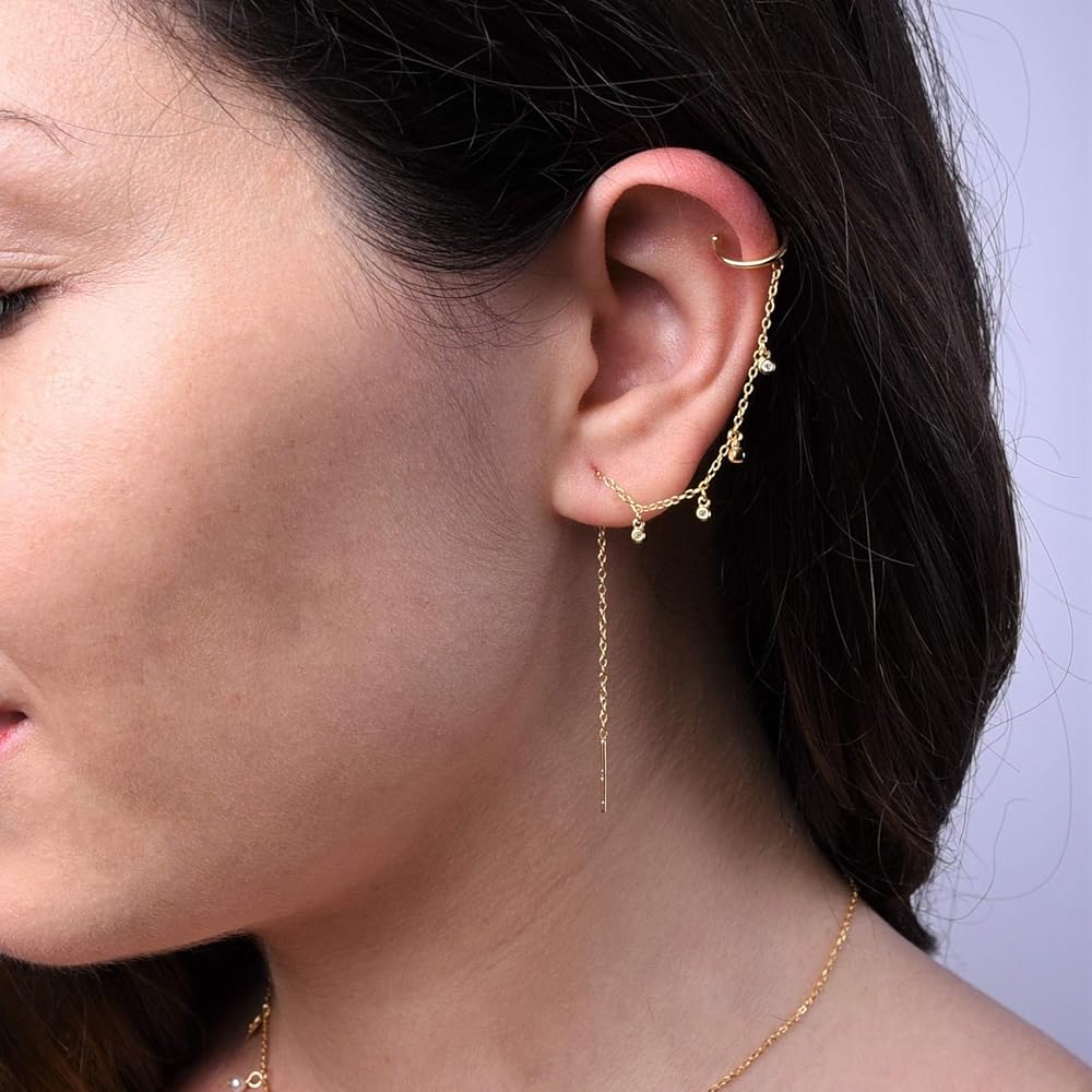 اتجاهين الغضروف الكفة التفاف متسلق الزاحف استرخى قطرة عراف 18K الذهب فيرميل أقراط