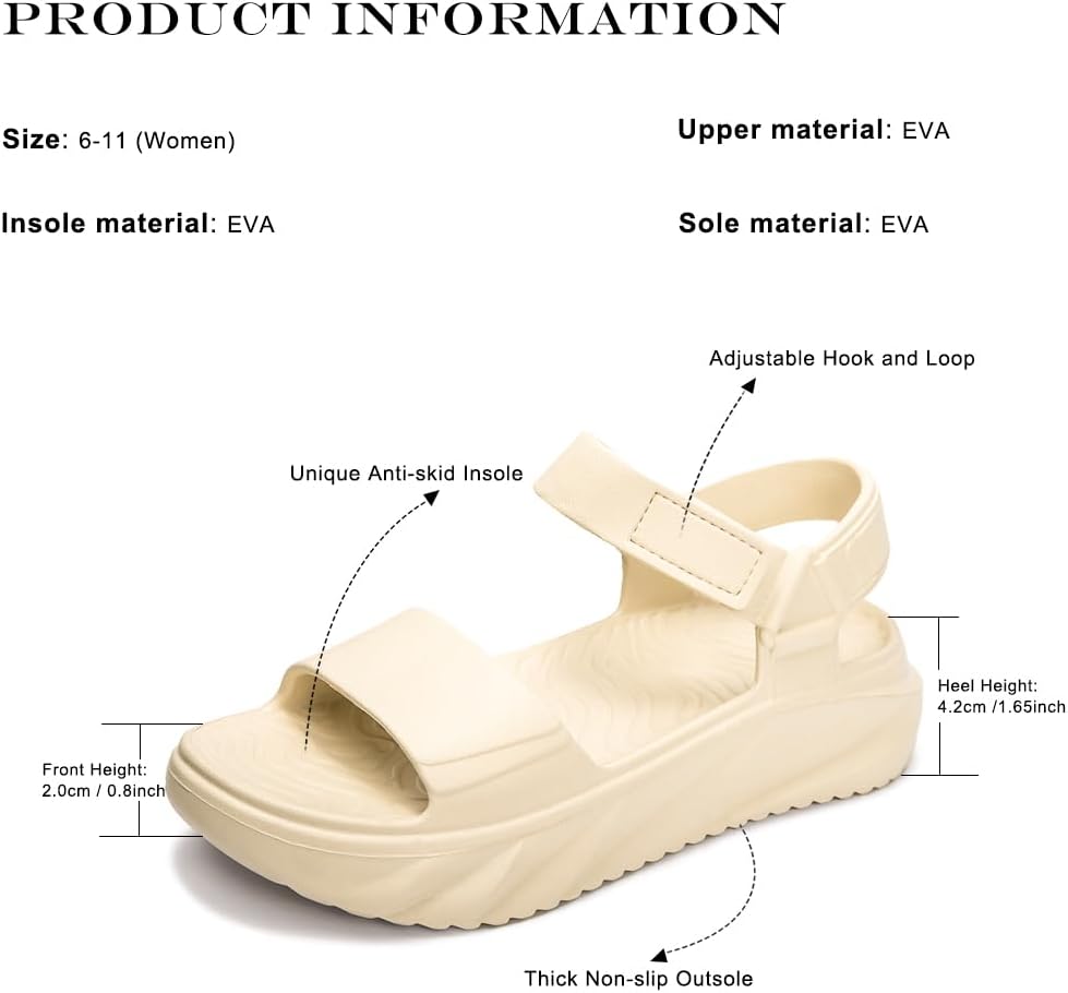 【خفيفة الوزن ومريحة】الأحذية مصنوعة من مادة أسيتات إيثيلين-فاينيل (EVA)، وهي أكثر مقاومة للماء وخفيفة الوزن. يبلغ الارتفاع الأمامي للحذاء 0.8 بوصة، وارتفاع الكعب 1.65 بوصة. يمكن للنعل السميك أن يحقق تأثيرًا جيدًا لامتصاص الصدمات، مما يجعله أكثر راحة في الارتداء.