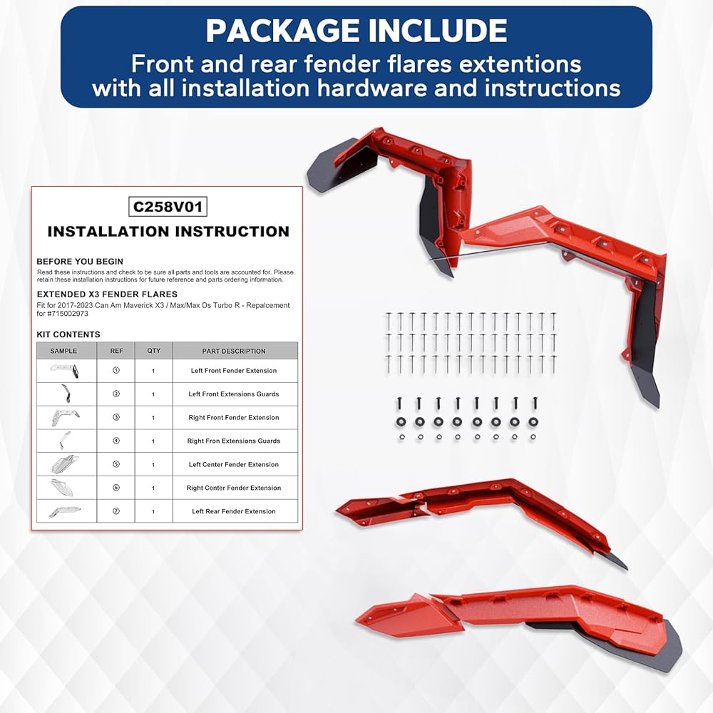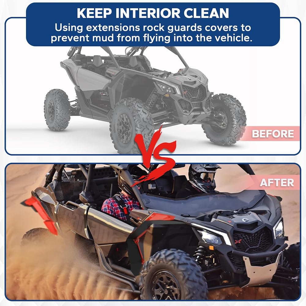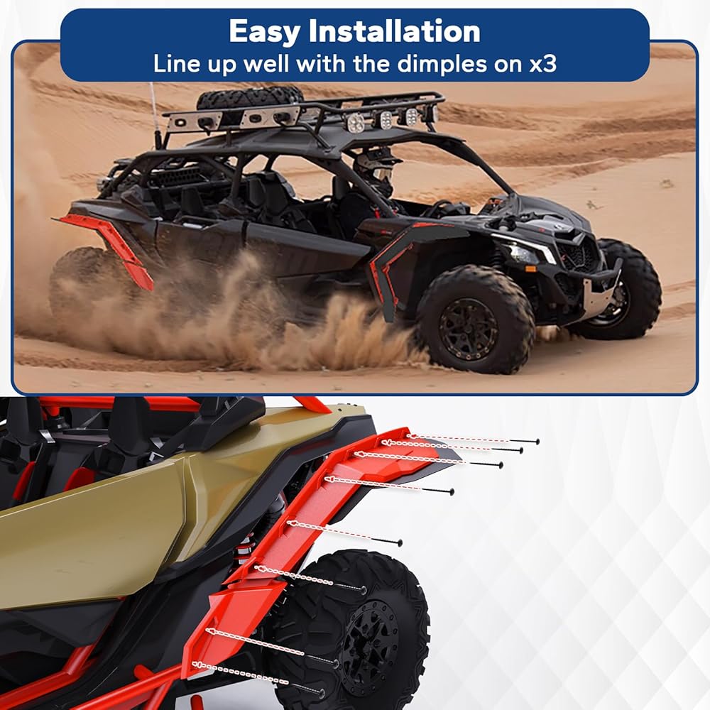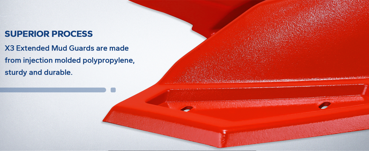 [عملية متفوقة] واقيات الطين الممتدة ELITEWILL X3 مصنوعة من مادة البولي بروبيلين المصبوبة بالحقن. توفر اللمسة النهائية الحمراء من المصنع مظهرًا قويًا وملفتًا للنظر لسيارتك. ستعمل عمليتنا على تحسين المتانة والمرونة وتجعل هذه المصدات فعالة ضد التشقق والاعوجاج والطباشير لتوفير تجربة قيادة متفوقة.