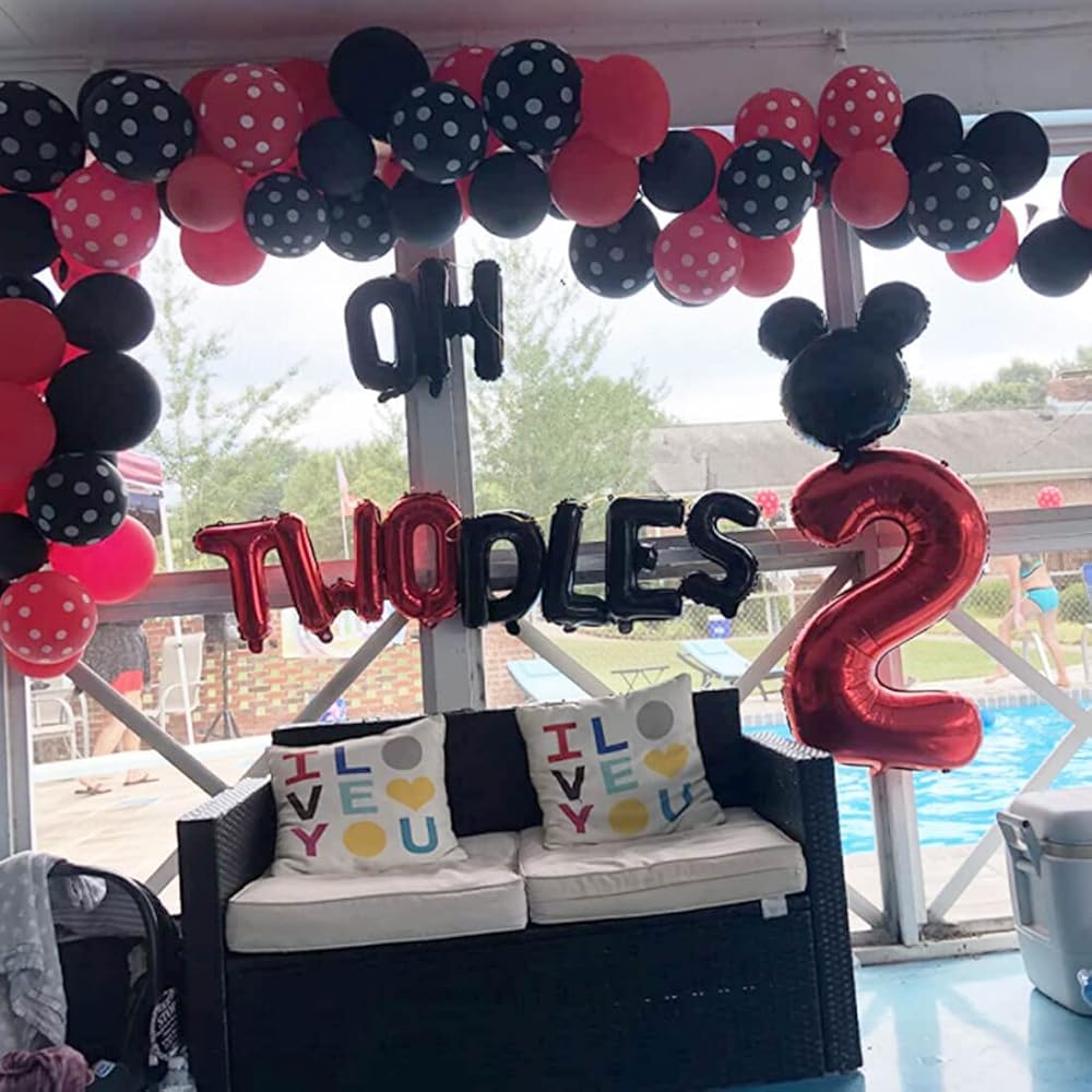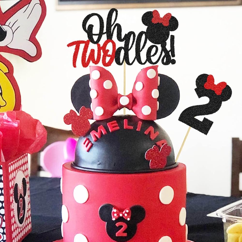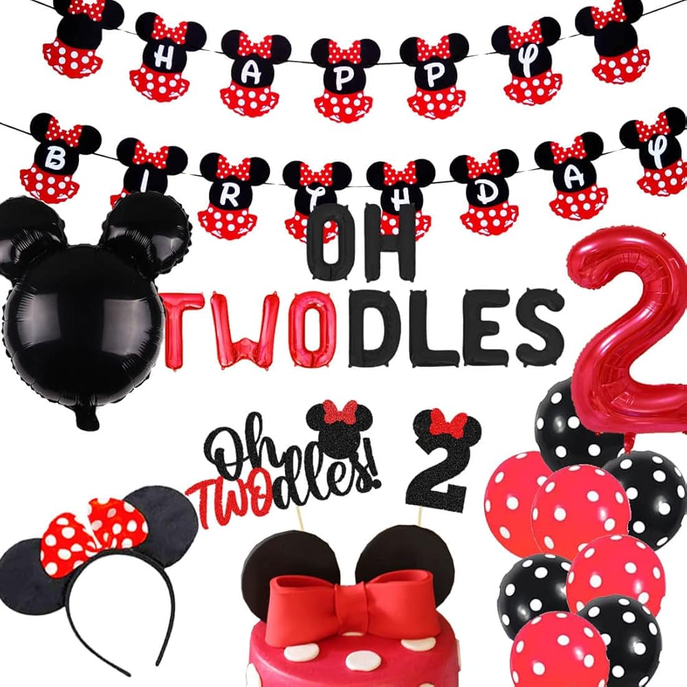 Oh Twodles Balloons Pink Mouse Second Birthday Mouse Banner Cake Topper 2nd Banner Party Supplies Decorations Photo Prop for Girl Baby Bday Pink