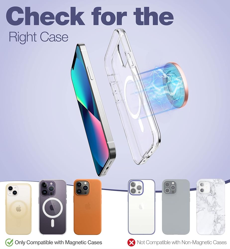 【التوافق والضمان】تعمل حلقة الهاتف المغناطيسية الخاصة بنا فقط بدون حافظة عادية، أو متوافقة مع سلسلة iPhone 14/13/12، أو استخدمها مع حافظات متوافقة مع magsafe. تقدم SURITCH ضمانًا لمدة عام واحد، إذا كانت لديك أي احتياجات أو مشكلات، فيرجى الاتصال بنا وسنعمل على حل مشكلاتك.