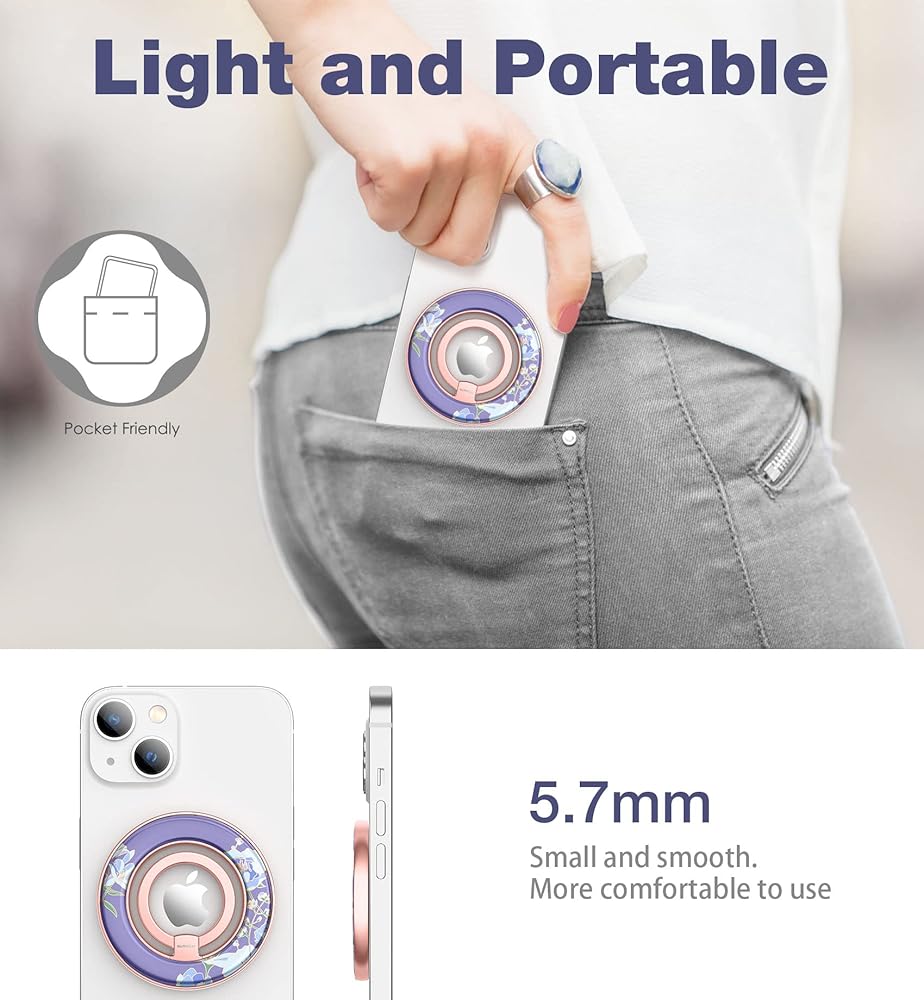 【استخدمها بمزيد من الراحة】على عكس بعض الحلقات اللاصقة غير القابلة لإعادة الاستخدام، لا تترك حلقة الهاتف المغناطيسية أي علامات أو بقايا بعد فصلها، ويمكن تركيبها وخلعها بسهولة مرارًا وتكرارًا. يسمح لك الحجم الخفيف والصغير بحمله دون الشعور بضخامة حجمه.