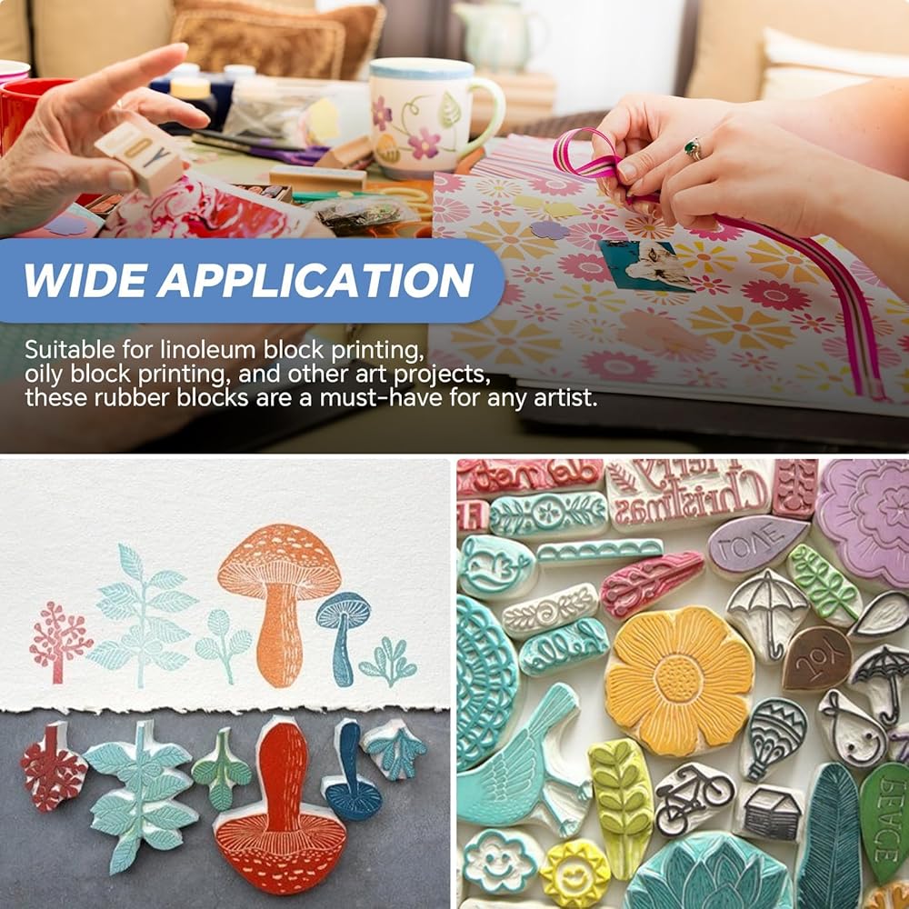 - استخدام متعدد الاستخدامات: مناسبة لطباعة مكعبات اللينوليوم، وطباعة الكتل الزيتية، وغيرها من المشروعات الفنية، فهذه الكتل المطاطية ضرورية لأي فنان.