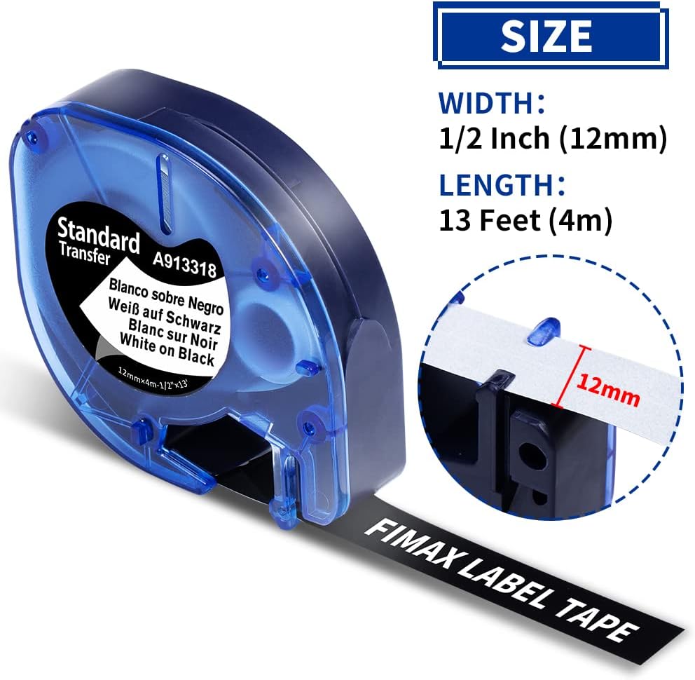 التفاصيل: 5 عبوات بديلة لعبوات Dymo Letratag طباعة بيضاء على شريط أسود 1805436 بلاستيك. الحجم: 1/2 بوصة (12 مم) عرض × 13 بوصة (4 م) طول. المادة: عبوات Letratag اللامعة مصنوعة من ورق البوليستر، ولكنها أقوى من الورق ومقاومة للتمزق.