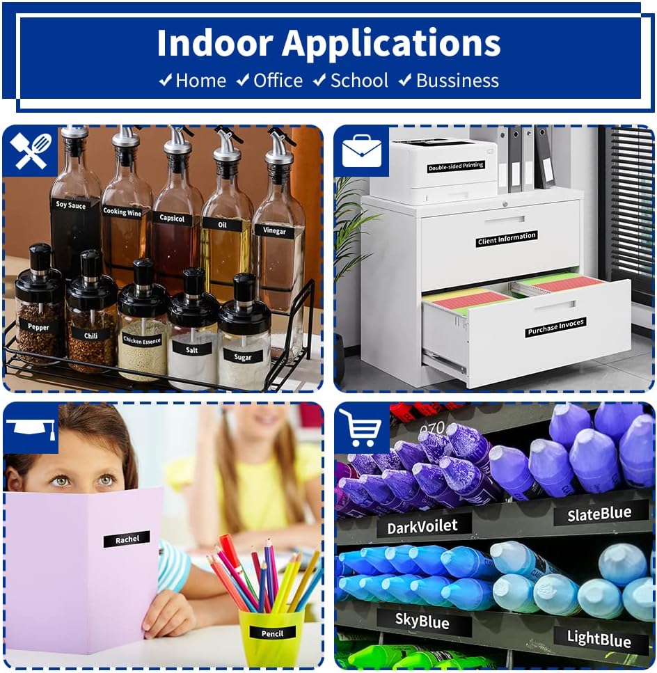 التطبيق: شريط الملصق مقاس 1/2 بوصة مثالي للاستخدام الداخلي. يمكنك إنشاء ملصقات مائية متوافقة مع Dymo Letratag مقاس 12 مم سهلة القراءة في المنزل أو المكتب أو أي مكان آخر. قم بقص عبوة الملصق بالأطوال التي اخترتها لوضع علامات على أدوات المطبخ وملفات المكتب واللوازم المدرسية وأي عناصر أخرى.
