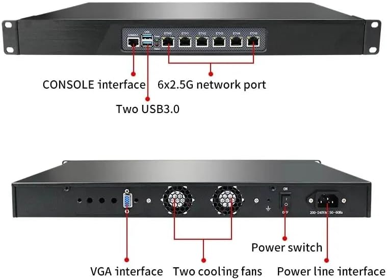 • This device has a console port, 2 x USB 3.0 ports, 6 x LAN ports, a VGA port, and a power switch, providing you with multiple options for connecting your devices and monitors. has a size of 430 x 255 x 45mm, compact and convenient.