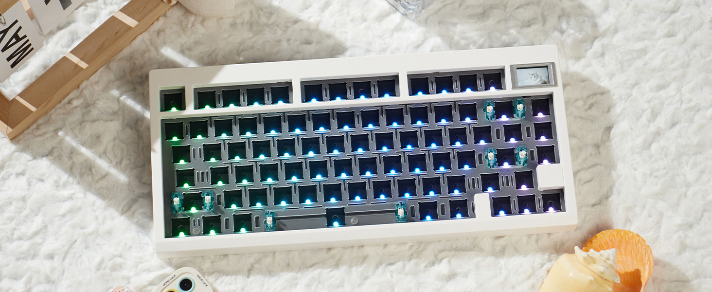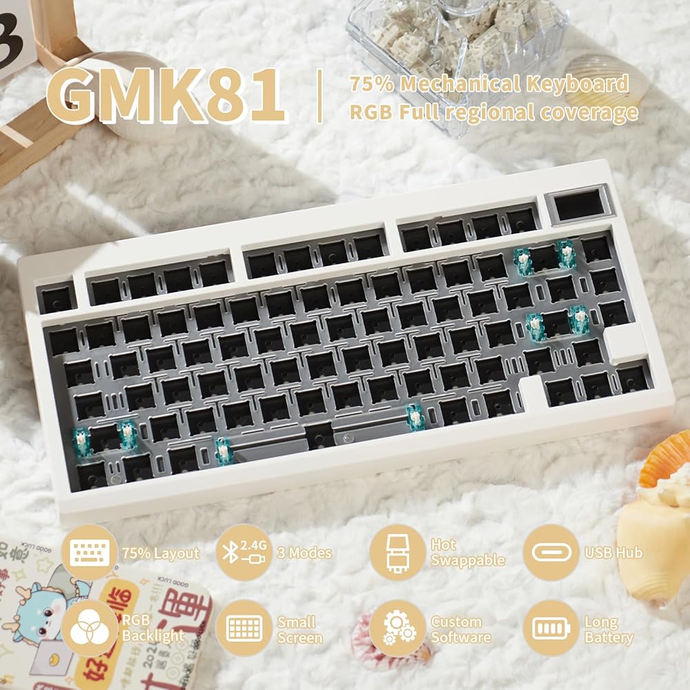 GMK81 مجموعة لوحة مفاتيح ميكانيكية بيضاء قابلة للتبديل الساخن بلوتوث 5.0/2.4G/Type-C لوحة مفاتيح RGB مخصصة مع لوحة مفاتيح لتخميد الصوت عبر لوحة مفاتيح قابلة للبرمجة لنظام التشغيل Windows macos iOS