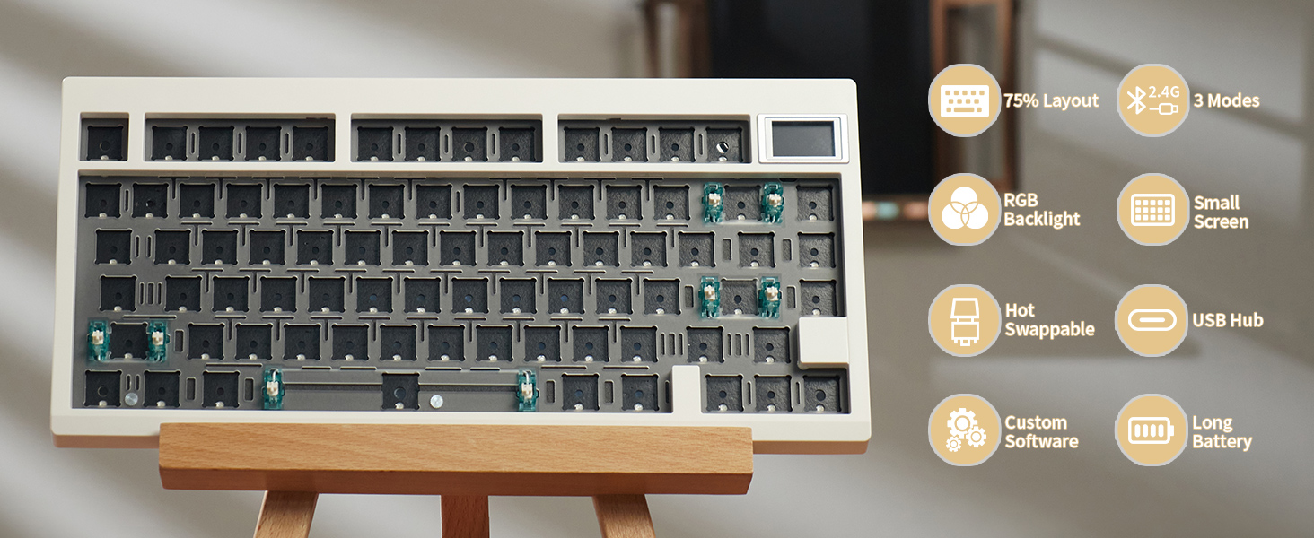 【3 أوضاع وتركيب فاصل】تدعم مجموعة GMK81 3 أوضاع اتصال: Bluetooth 5.0، 2.4G وسلكي من النوع C. باستخدام المادة الفاصلة الموجودة أعلى لوحة المفاتيح، يمكنك تقليل الاهتزاز بشكل كبير عند الكتابة والاستمتاع بإحساس أكثر وضوحًا بضغطة المفاتيح. سوف يمنحك تجربة كتابة رائعة.