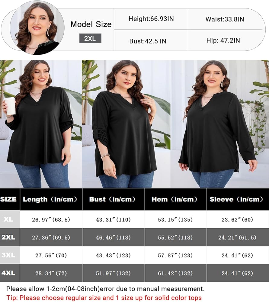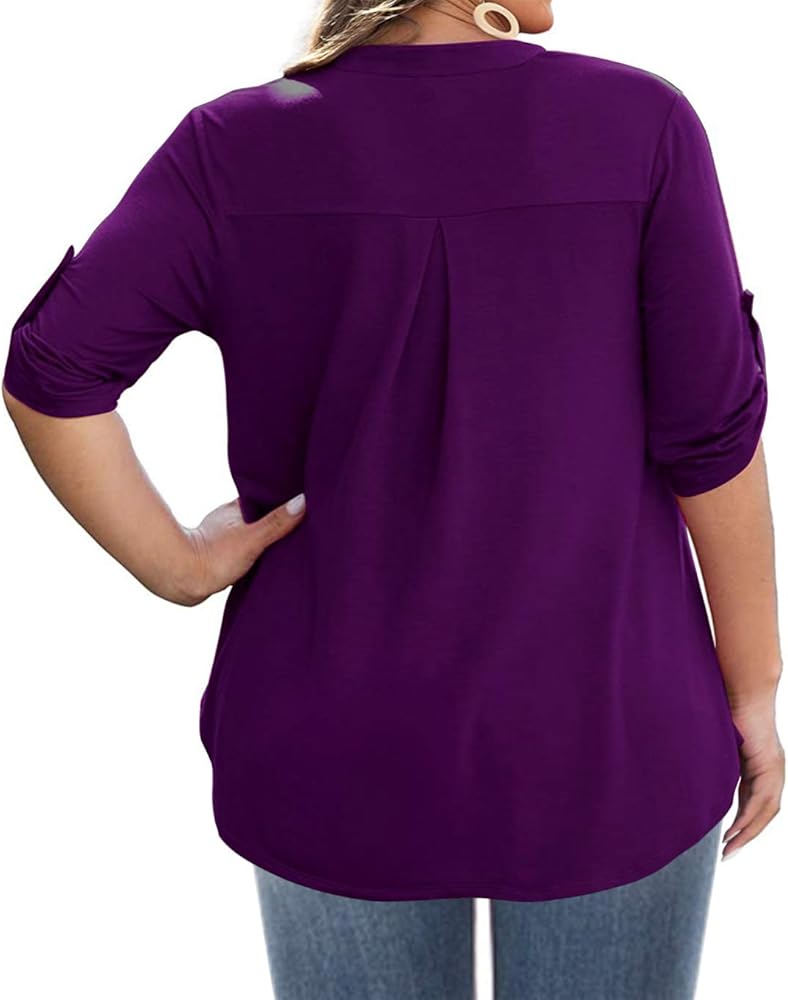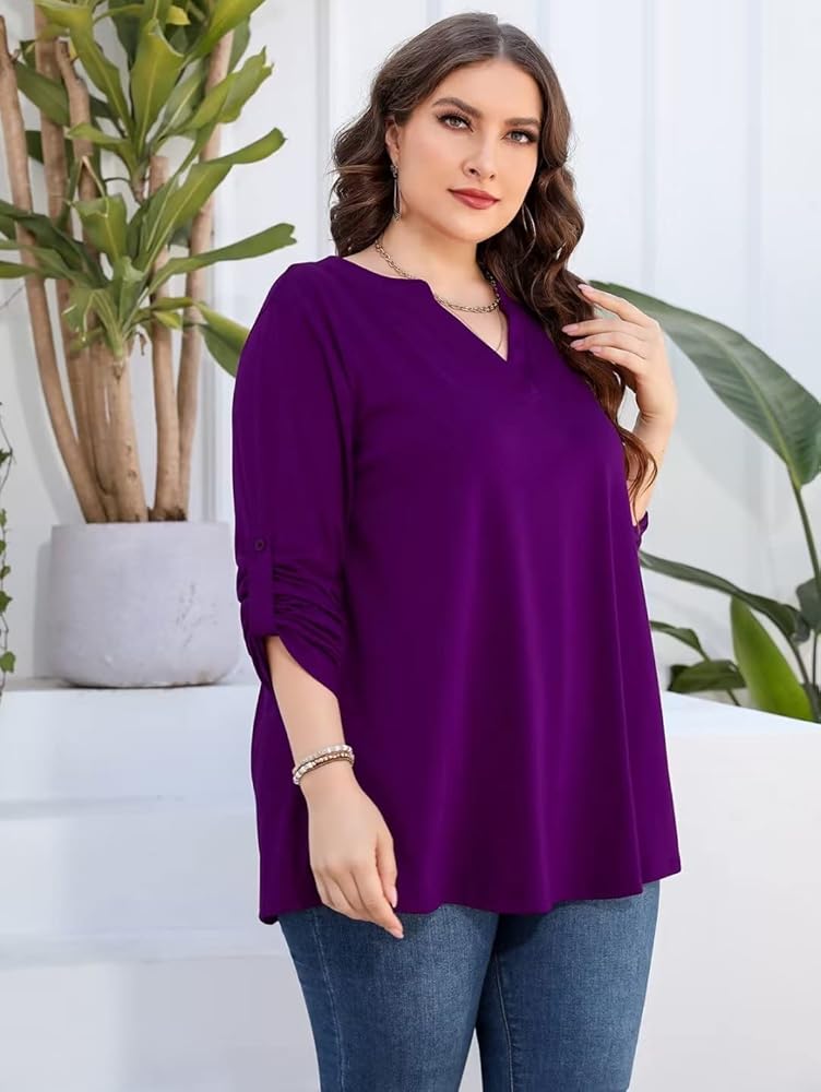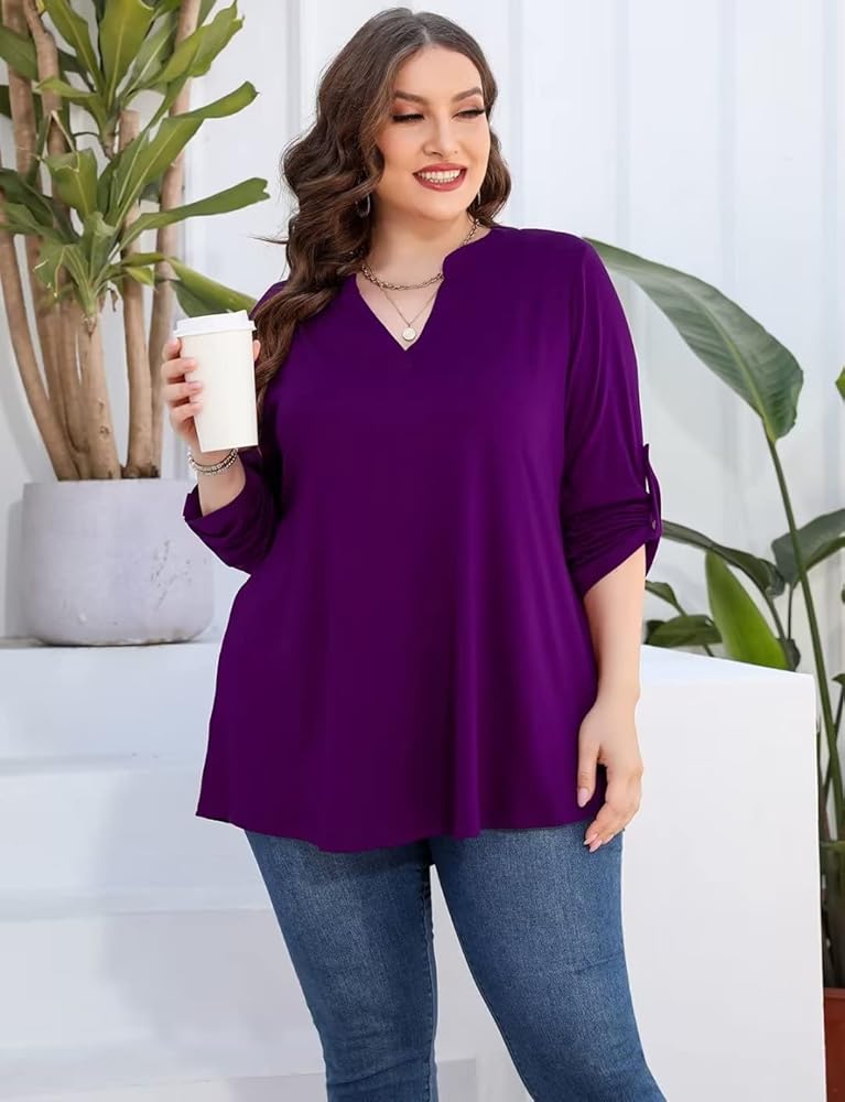 • Design: Split V Neck Design, fashion Floral print, Roll Tab Long Sleeves with Buttons, Curved Hem with Slight Pleats Design, fit flare, High low Hem for Plus size womens