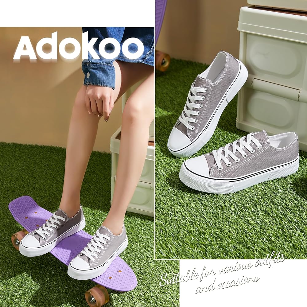 متعددة الاستخدامات - أحذية Adokoo القماشية النسائية ذات الرقبة المنخفضة هي طراز خالد وهدية مثالية للعودة إلى المدرسة يستحق كل شخص، سواء كان صغيرًا أو كبيرًا، أو مراهقًا أو بالغًا، امتلاك زوج للصالة الرياضية، أو الرياضة، أو المشي، أو المشي لمسافات طويلة، أو التدريبات، أو لباس غير رسمي.