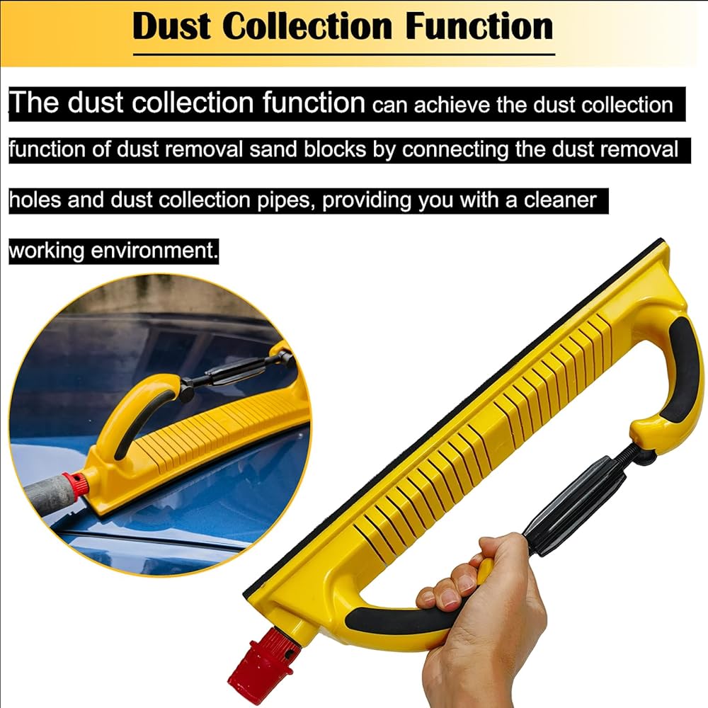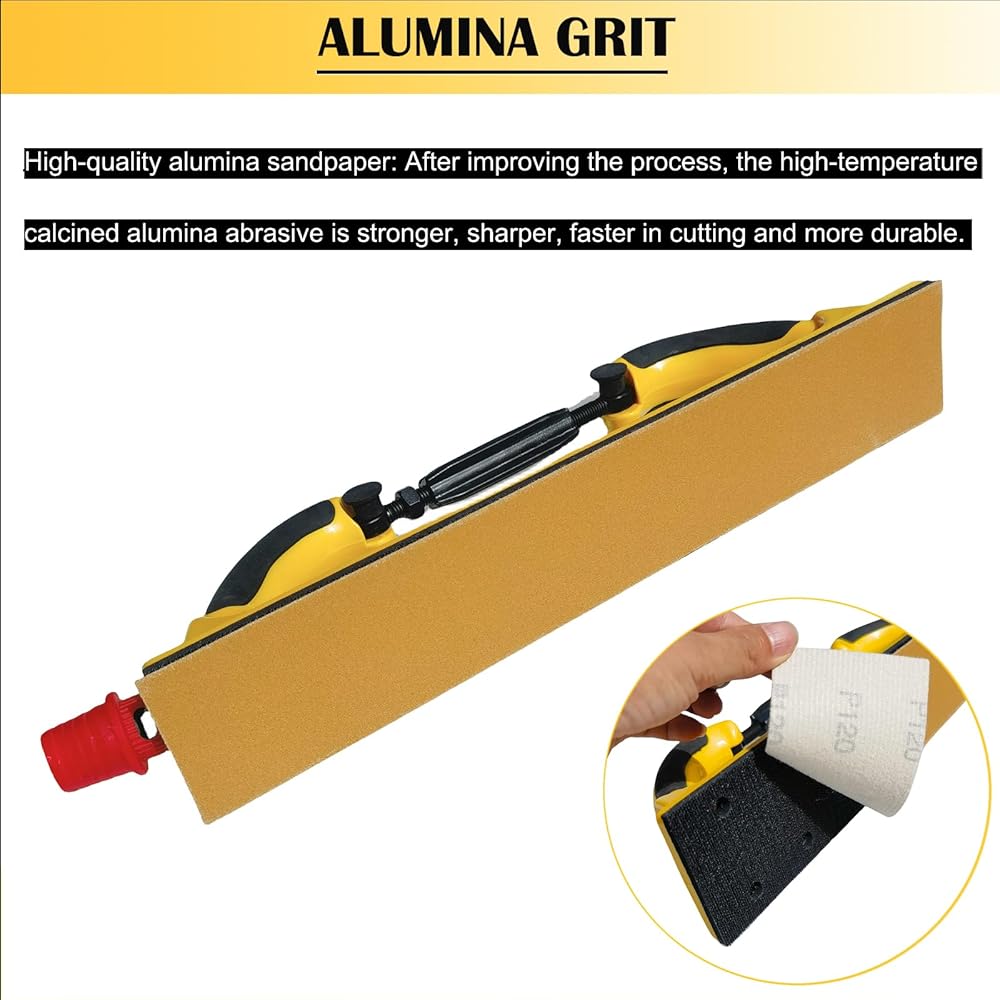 كتلة مبرد سنفرة يدوية طويلة قابلة للتعديل مع وسادة محول تحويل داعمة بخطاف وحلقة - كتلة صنفرة لاستخراج الغبار - 10 عبوات من ورق الصنفرة الألومينا لطحن الخشب في سفينة السيارات