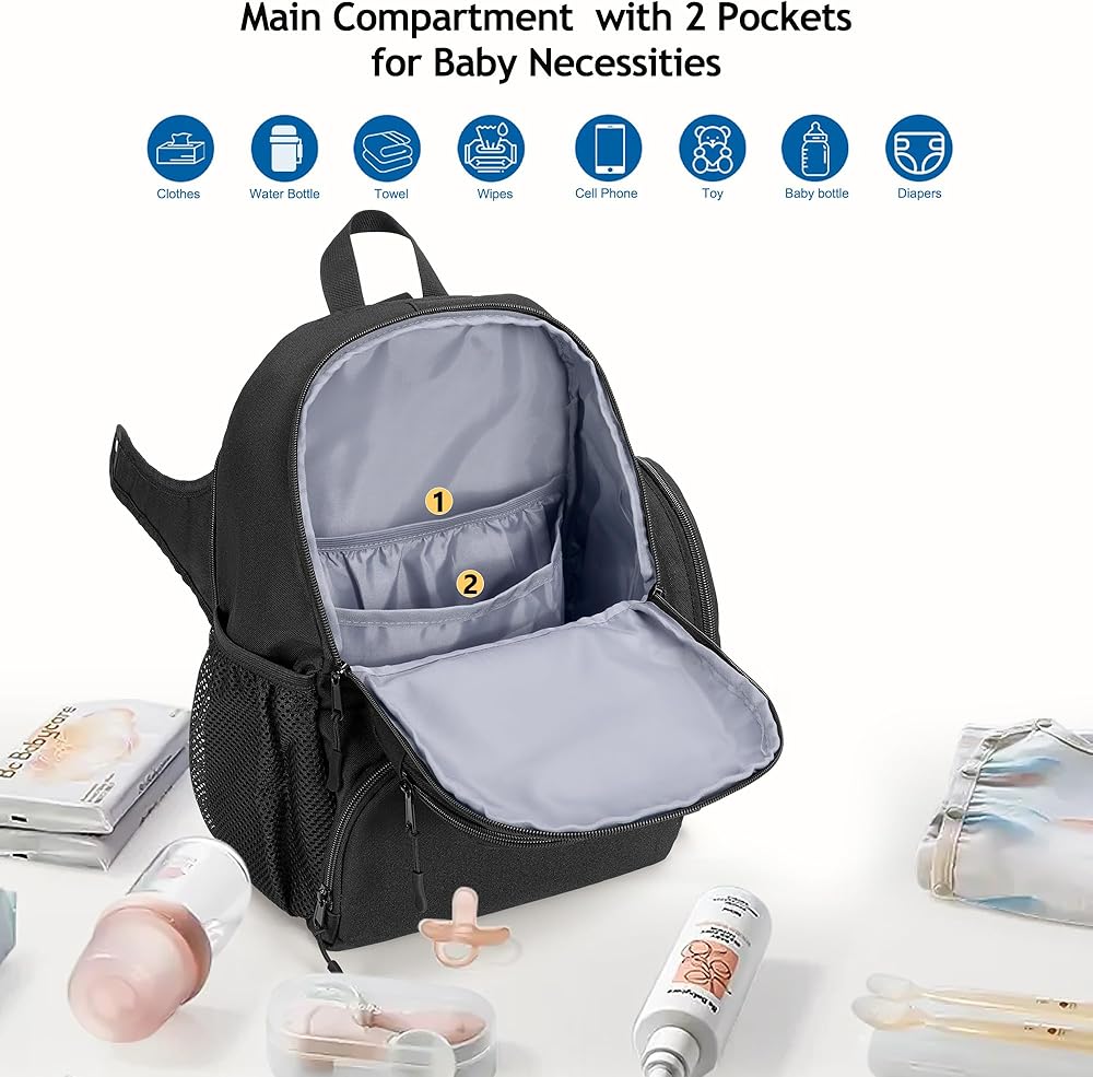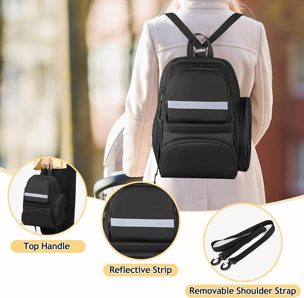سعة كبيرة: تنقسم المقصورة الرئيسية إلى ثلاثة أجزاء، وهي مثالية لحمل المناديل المبللة والحفاضات وتغيير الملابس وأدوات التغذية وما إلى ذلك. شرائط عاكسة لزيادة الرؤية لتسهيل رؤيتها في الظلام.