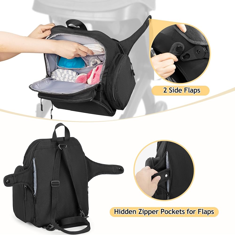 مساحة تخزين إضافية: جيبان بسحاب في الأمام يمكنهما تخزين مستلزمات الأطفال الصغيرة، مثل الألعاب والوجبات الخفيفة والمريلة. جيب شبكي جانبي لزجاجة المياه، وجيب جانبي آخر مع بطانة من رقائق الألومنيوم يمكن أن يحافظ على حليب الثدي أو الماء باردًا أو دافئًا.