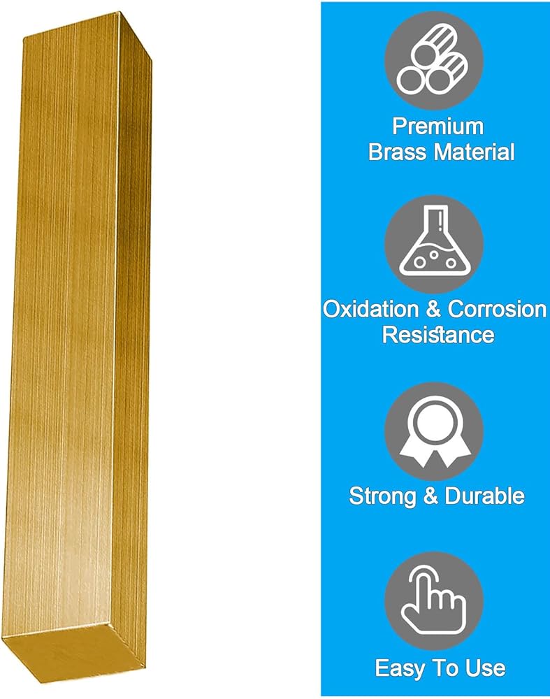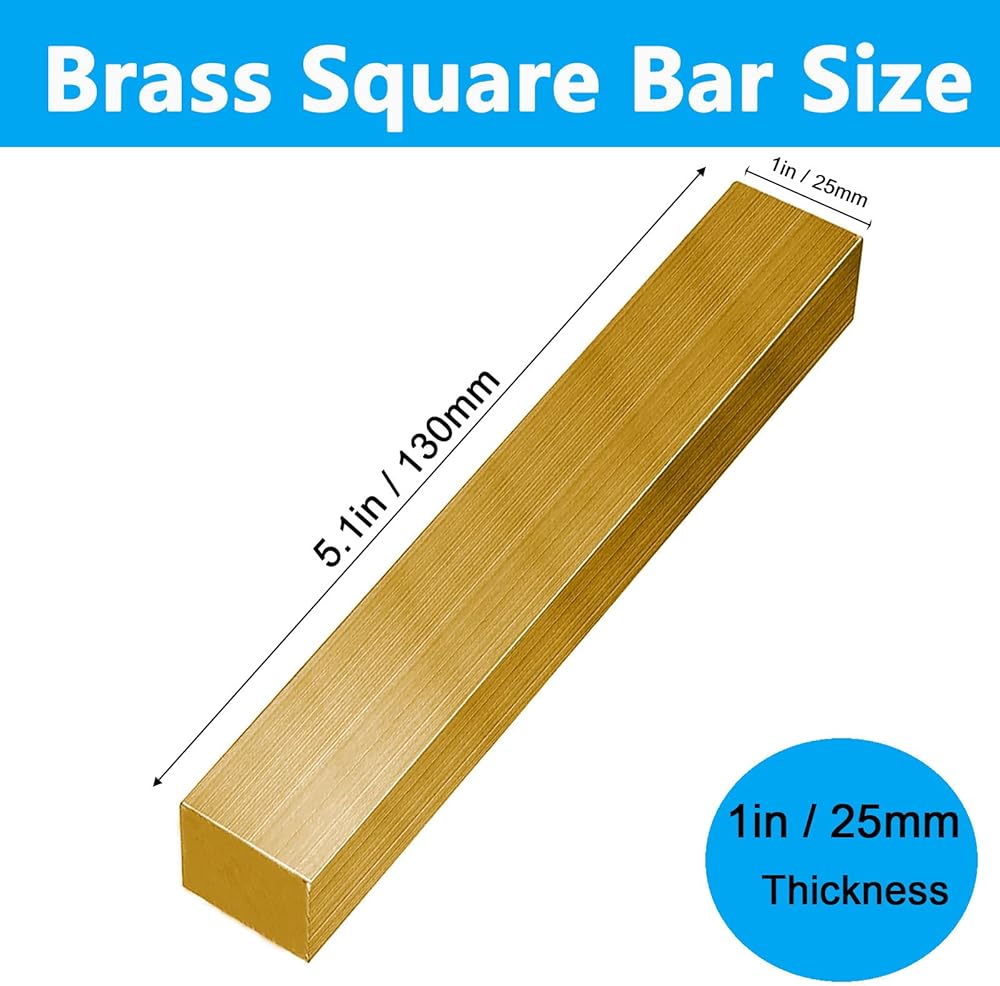 Brass Square Bar, 25mm Thickness x 25mm Width x 130mm Length Brass Square Bar Stock, 1" x 1" x 5" Solid Flat Mill Stock