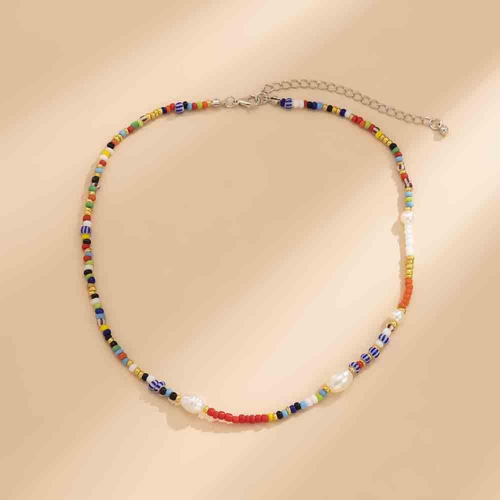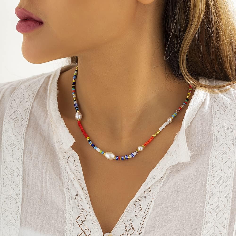 قلادة بوهيمية مطرزة بالخرز قلادة من اللؤلؤ مجوهرات شاطئ بوهو للنساء والفتيات