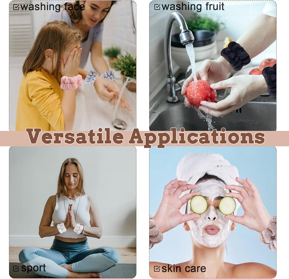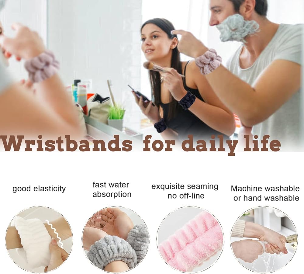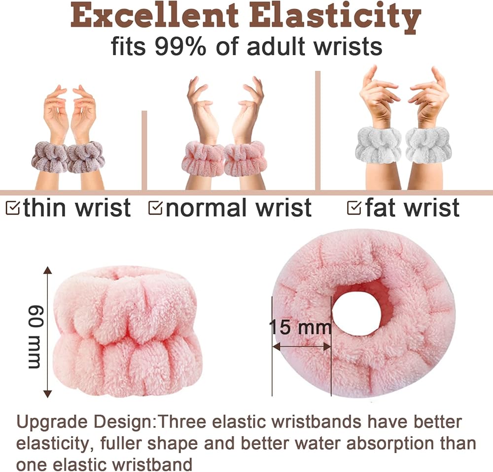 مناشف المعصم لغسل الوجه، أساور معصم من الألياف الدقيقة، أساور معصم ماصة للغسيل للنساء والفتيات تمنع الماء من انسكاب ذراعيك...