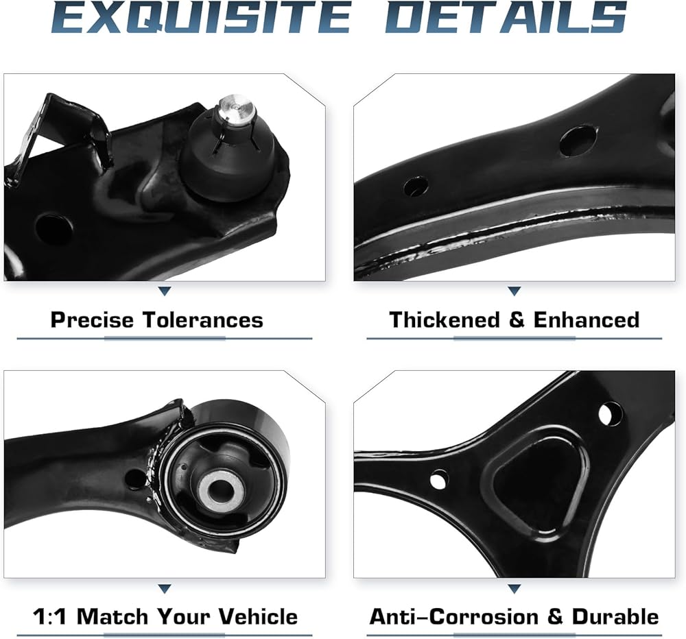 【تتضمن المجموعة】 تتضمن مجموعة ذراع التحكم ما يلي: 2x ذراع تحكم سفلي أمامي مع مجموعة وصلات كروية - جانب الراكب والسائق