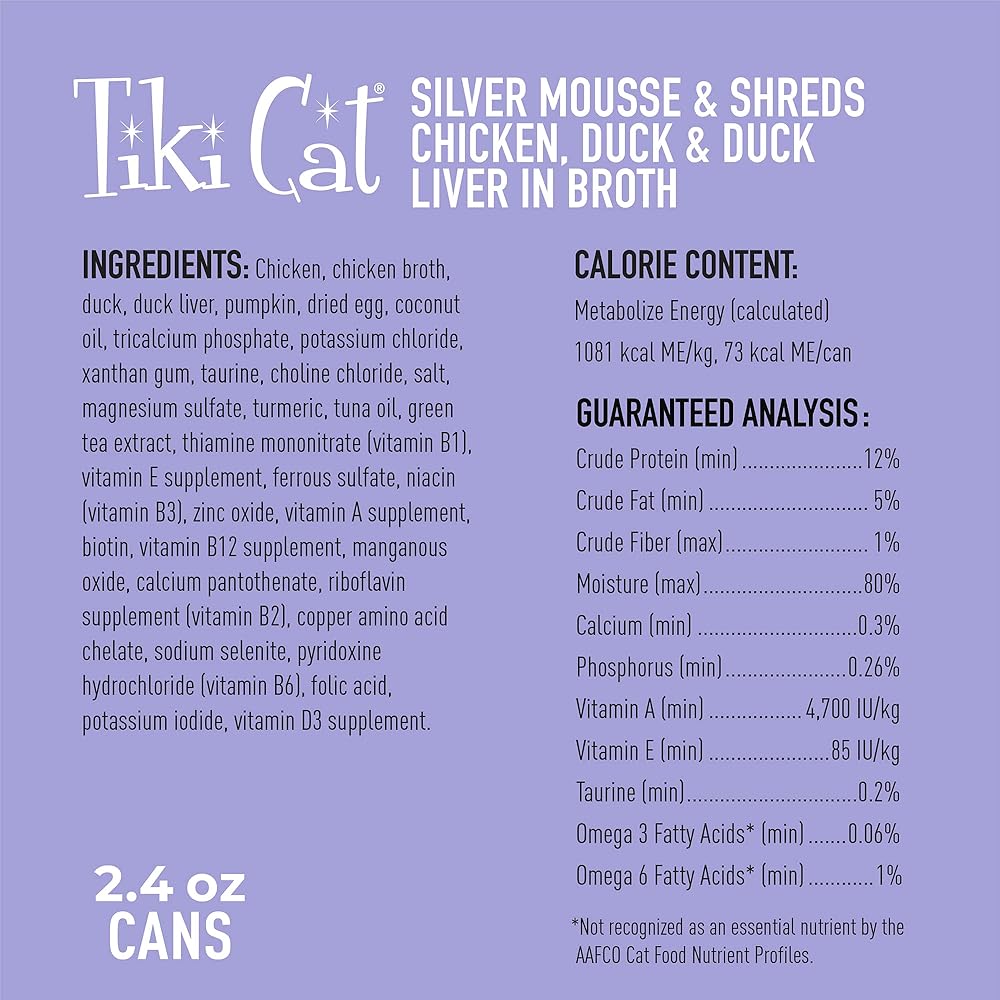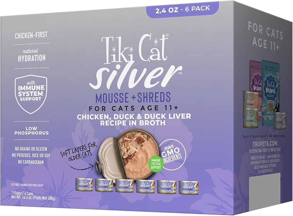 Tiki Cat Silver Wet Cat Food for Seniors, Chicken, 2.4 oz. Cans (6 Count)