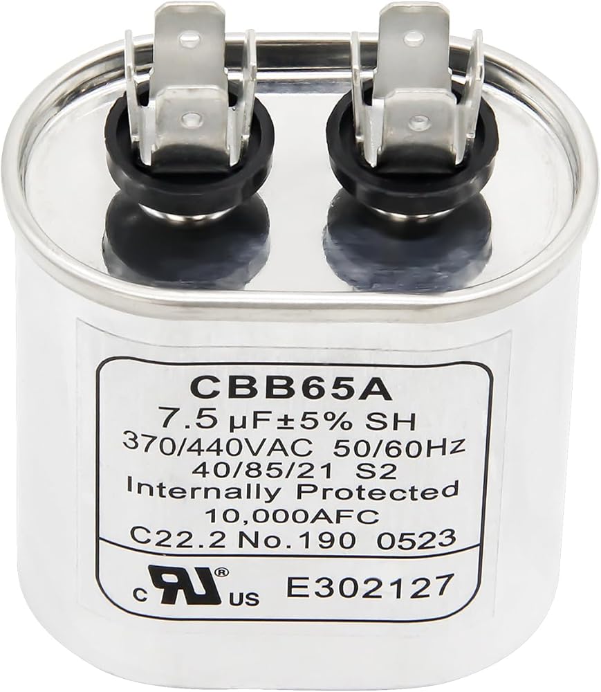7.5 uf/MFD 370/440 VAC ±5% 50/60 Hz AC Electric Motor Start Capacitor Fits for Central Air Conditioners, Heat Pumps, Condenser Fan Motors