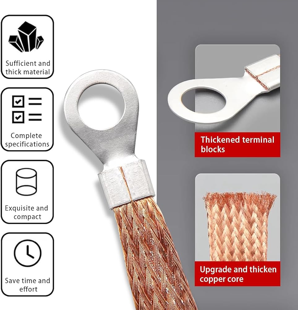 • Excellent Conductive Performance: Copper is a good conductive material, and the copper braided grounding strap can provide good grounding performance to ensure that the system of various vehicle components works normally.