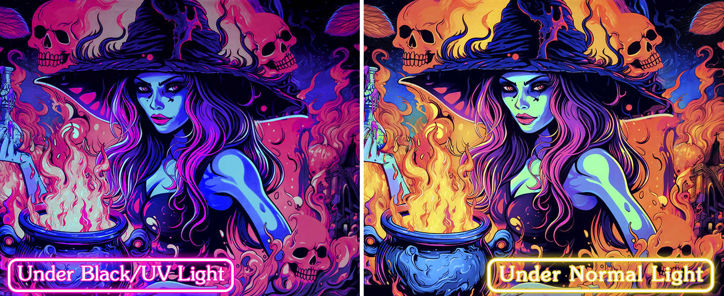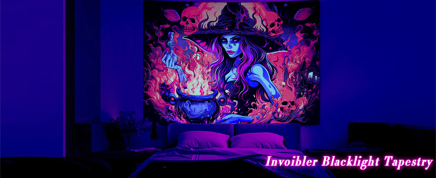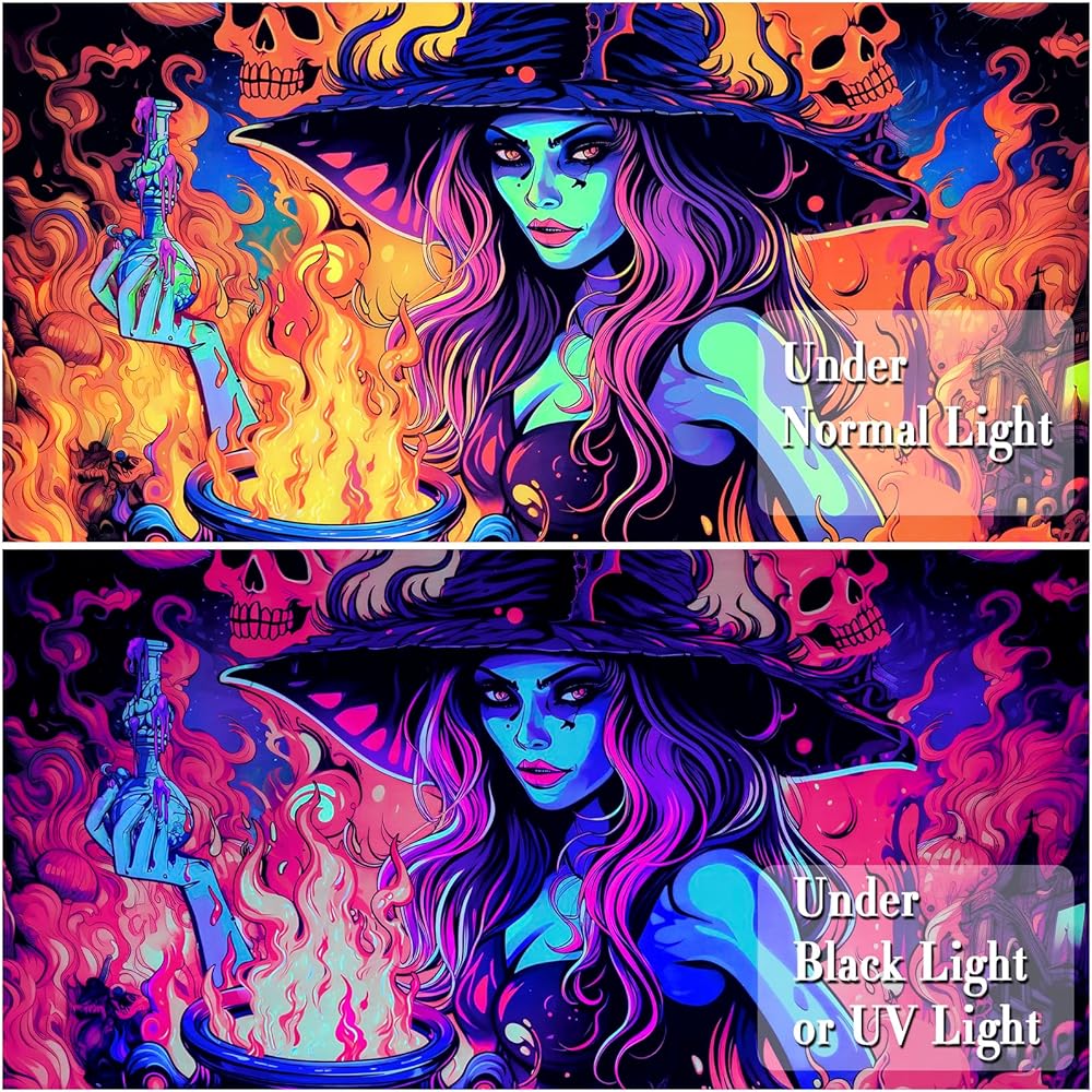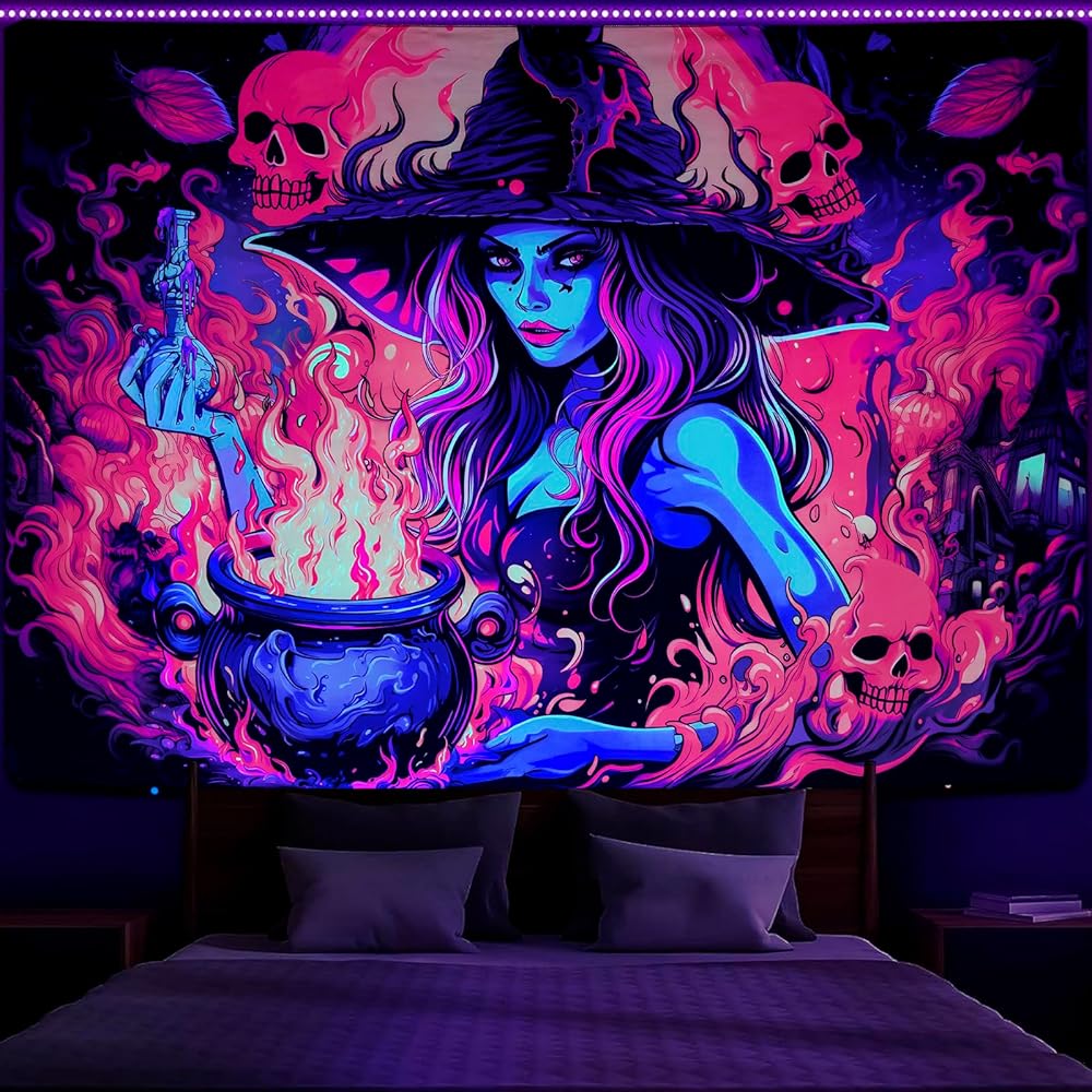 Invoibler Blacklight Witch Tapestry الأشعة فوق البنفسجية رد الفعل الجمجمة المفروشات ماجيك جرعة النار نسيج يتوهج في الظلام نسيج أسود ضوء نسيج لغرفة النوم (59.1 × 82.7 بوصة)