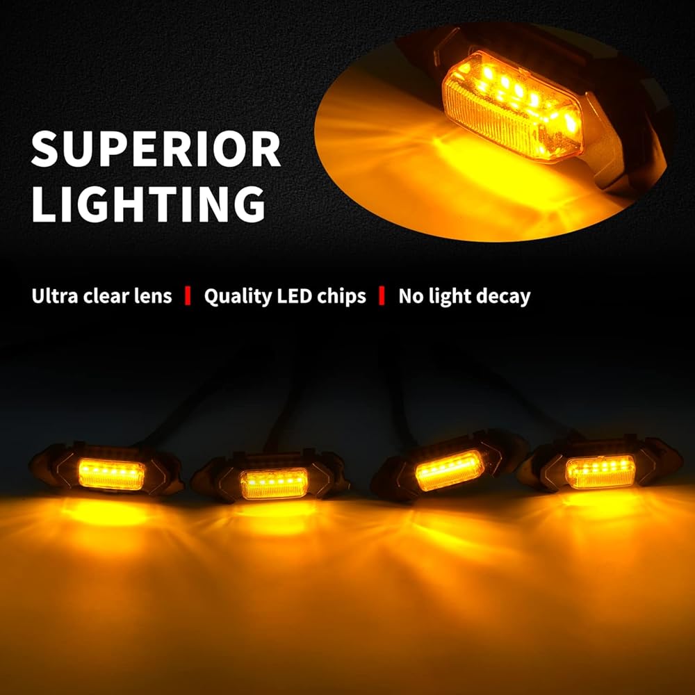 【جودة مضمونة】 رقائق LED مطورة للحصول على سطوع ثابت، لا توجد مشكلة مع الوميض عند اصطدامك بصدمة أو الكثير من الرياح عليها. تضمن الإضاءة الممتازة رؤية واضحة وجاذبية أكثر في الليل الأسود، وتحافظ على سلامتك أثناء القيادة على الطريق.