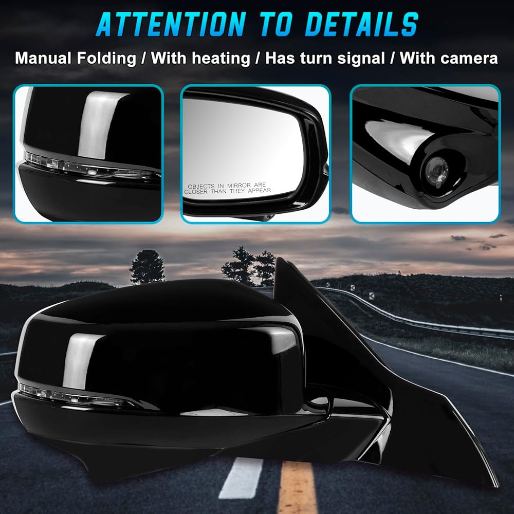 【استبدال مناسب تمامًا】تتميز مرآة الرؤية ذات 12 دبابيس بزجاج كهربائي ساخن وإشارات الانعطاف والكاميرا، ويمكن طيها بشكل مامي. يطابق مواصفات المصنع بدقة، ويستعيد وظائف المرآة الأصلية وجمالياتها.