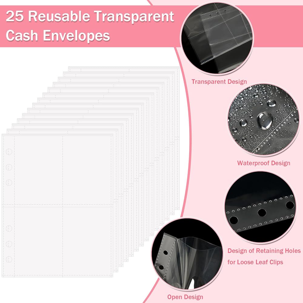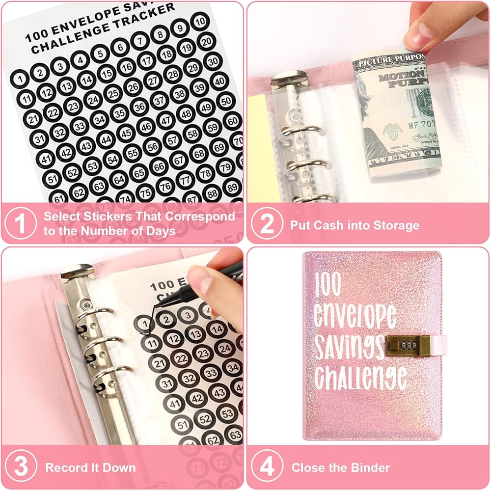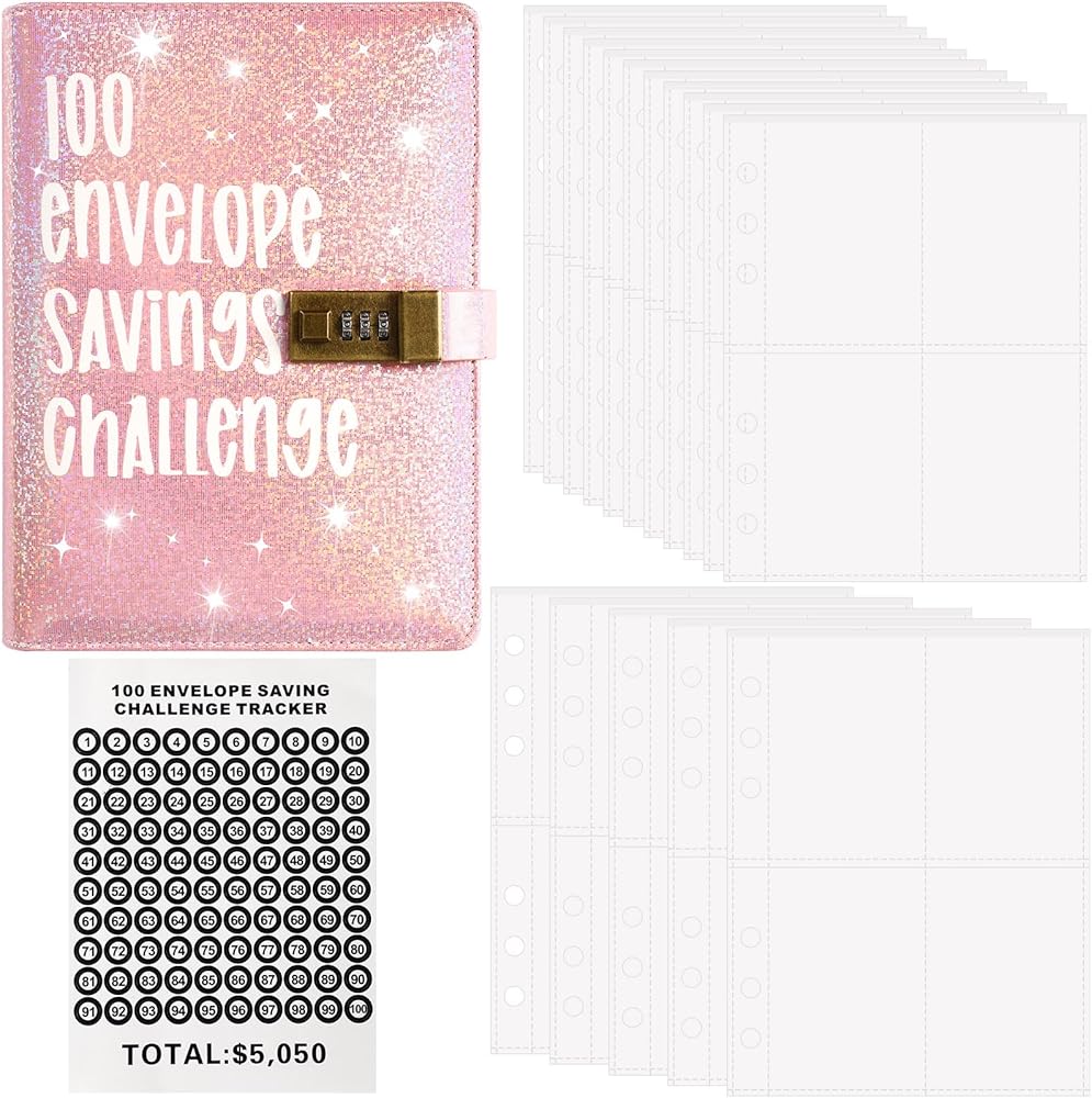 مجموعة أدوات توفير المال: تم تصميم غلاف تحدي 100 ظرف مع فتحة للبطاقات، ومحفظة للنقود، وغطاء شفاف قابل لإعادة الاستخدام مما يجعل كل النفقات واضحة ومرئية. بالإضافة إلى ذلك، هناك من 1 إلى 100 ملصق أرقام لمساعدتك على تتبع مكان وجود كل قرش