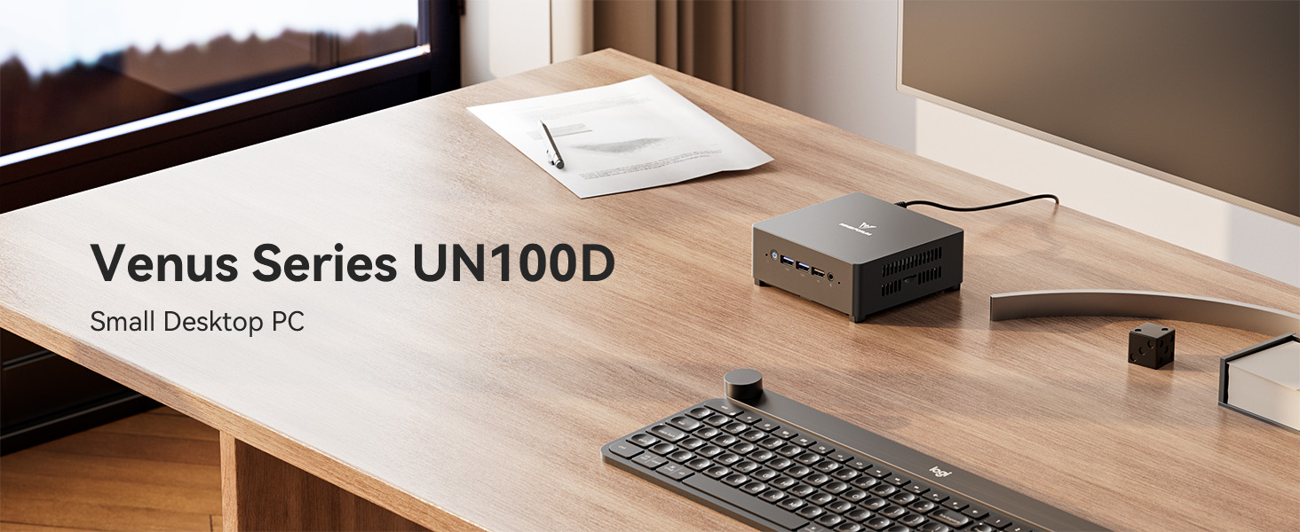 【Great Alder Lake-N100 CPU】جهاز الكمبيوتر الصغير MINISFORUM UN100D مجهز بأحدث معالج Intel Alder Lake N100 من الجيل الثاني عشر ((4C/4T، 6M Smart Cache، حتى 3.4 جيجا هرتز)، والأداء أعلى بنسبة 25% من معالج N5105.