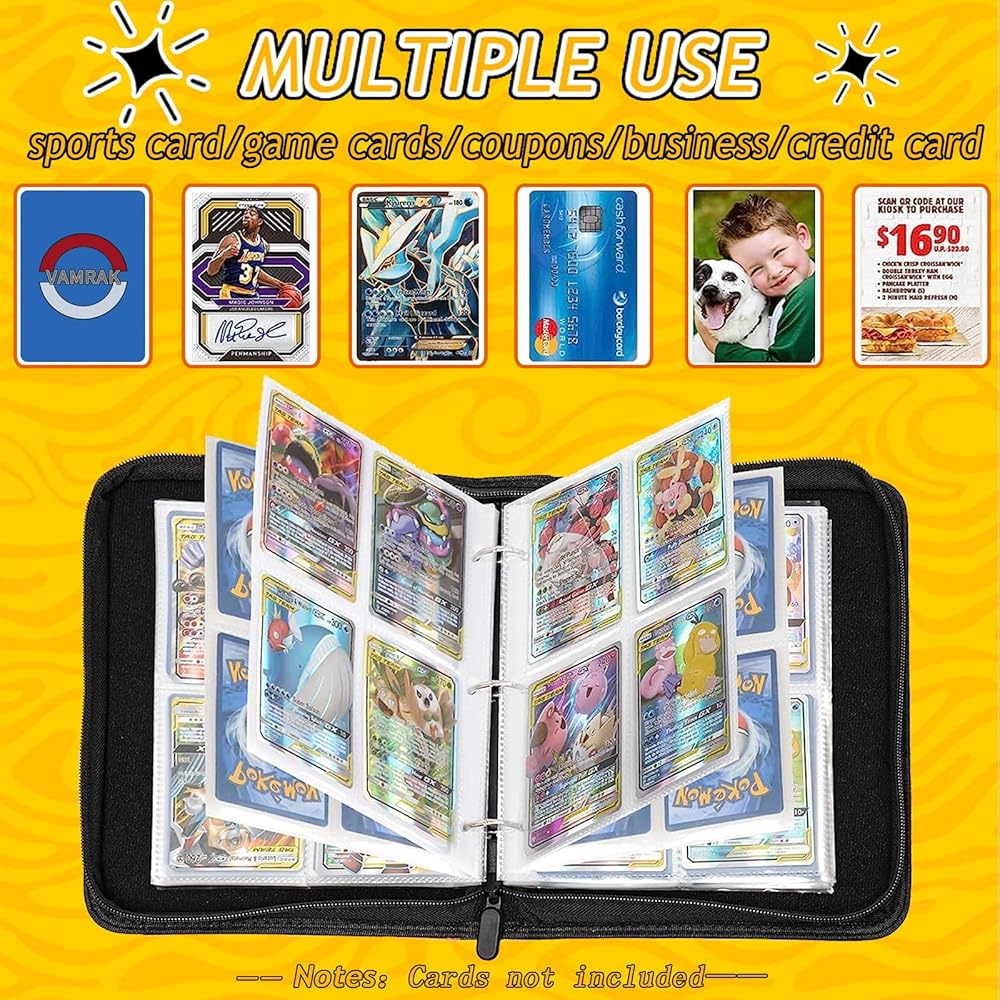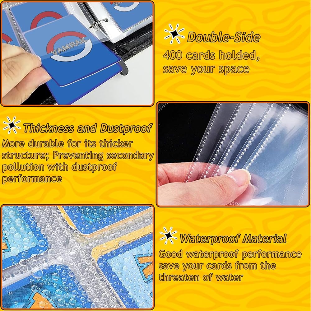 • 【أكمام بطاقات عالية الجودة】حامل بطاقات التداول الخاص بنا مزود بـ 50 أكمام قابلة للإزالة و4 صفحات بأربعة جيوب (استخدام على الوجهين) لحمل 400 بطاقة، وهو قابل لإعادة الملء/التوسيع، ويمكنك زيادة أو تقليل الصفحات الداخلية بشكل تعسفي. حافظة البطاقات ذات أكمام البطاقات تحمي بطاقة الألعاب المفضلة لديك من الخدوش أو الأوساخ