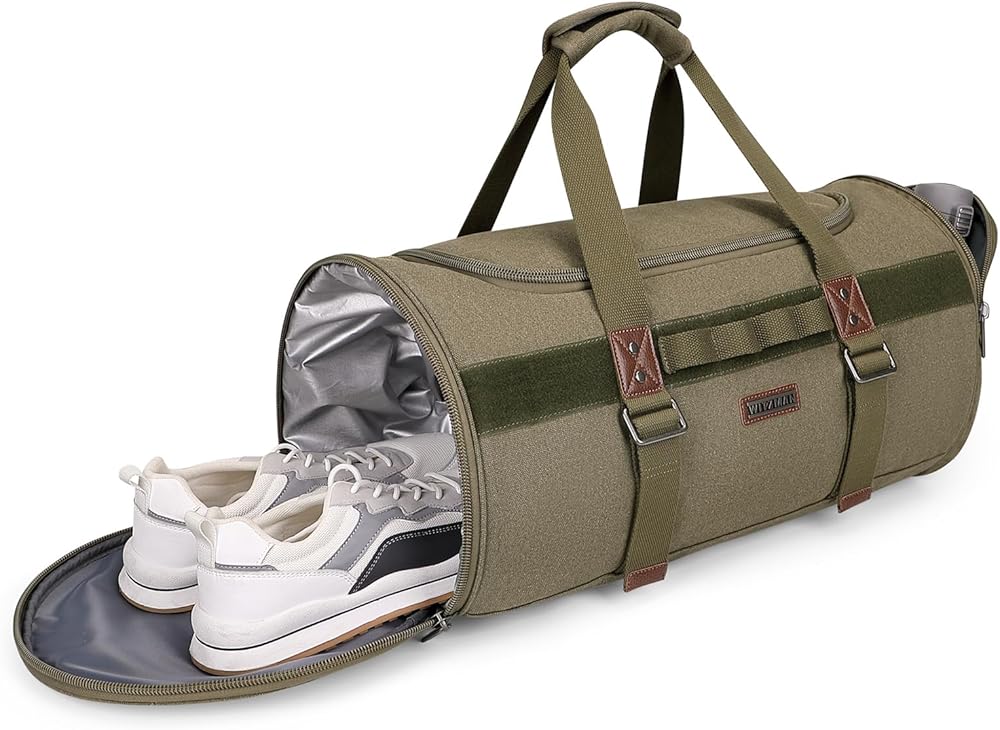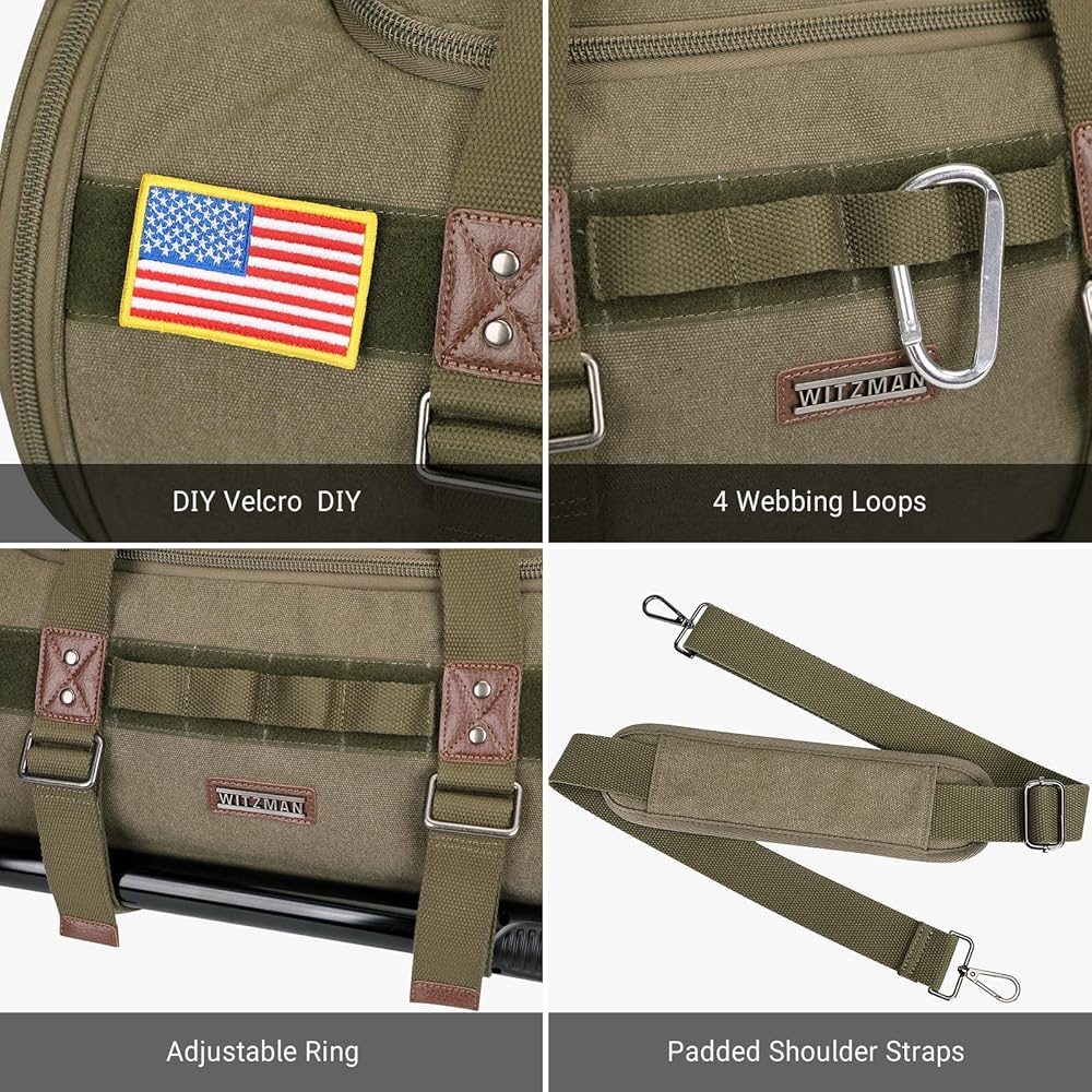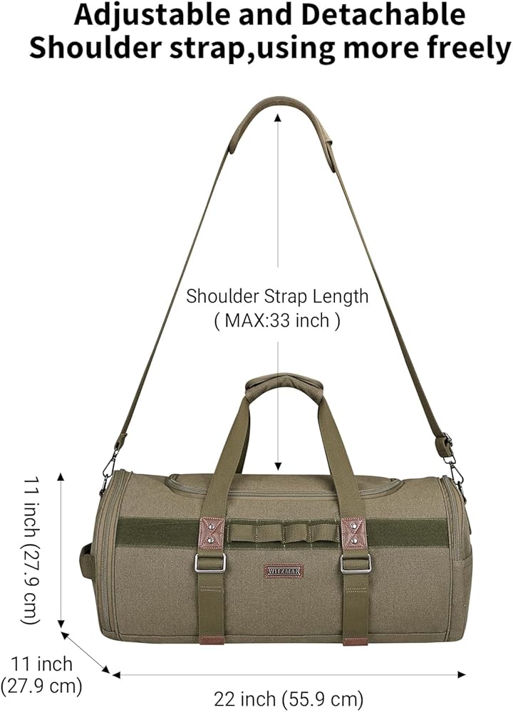 المادة والأبعاد: حقائب السفر هذه مصنوعة من قماش كتاني عالي الجودة. بطانة من البوليستر؛ الأبعاد: حوالي 22.5 بوصة طول × 11.2 بوصة ارتفاع × 11.2 بوصة عرض (الطول: 57.15 × ارتفاع 28.45 × عرض 28.45 سم)؛ الوزن: 1.38 كجم (3.04 رطل). حزام من القماش الخشن قابل للإزالة والتعديل مقاس 30.2-52.8 بوصة؛